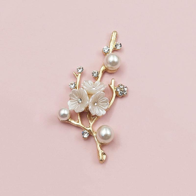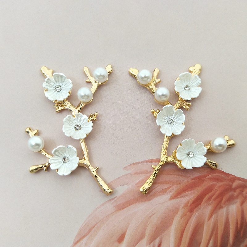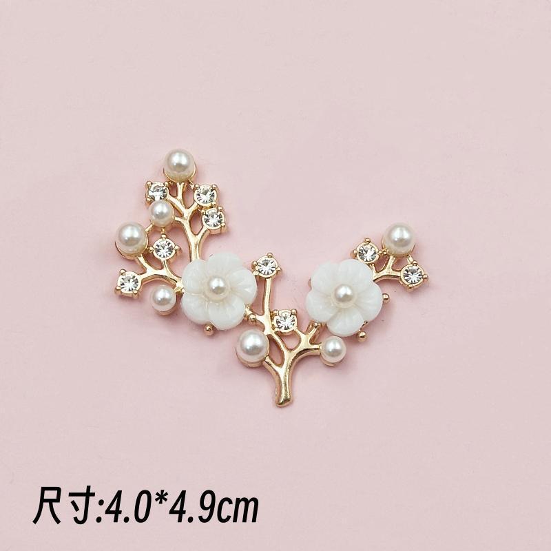 DIY手工饰品新娘禾服团扇镶嵌珍珠水钻花枝蜻蜓合金配件现货