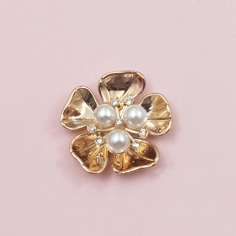 仿贝壳珍珠花心花朵合金饰品配件 古风diy发饰团扇汽车出风口材料