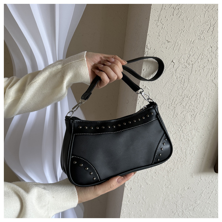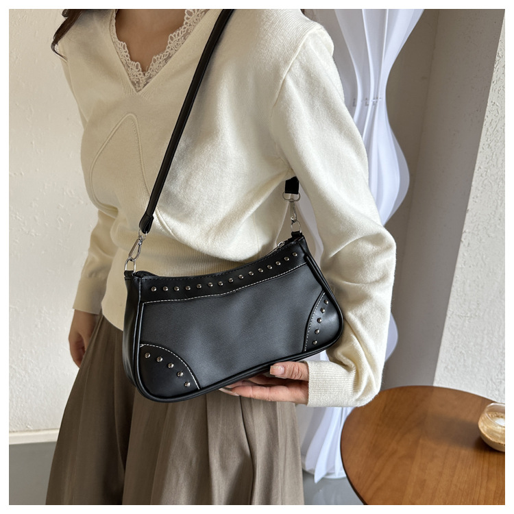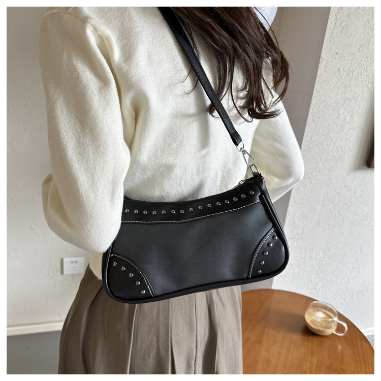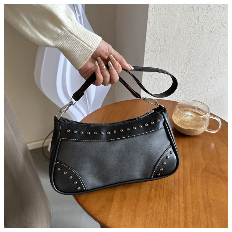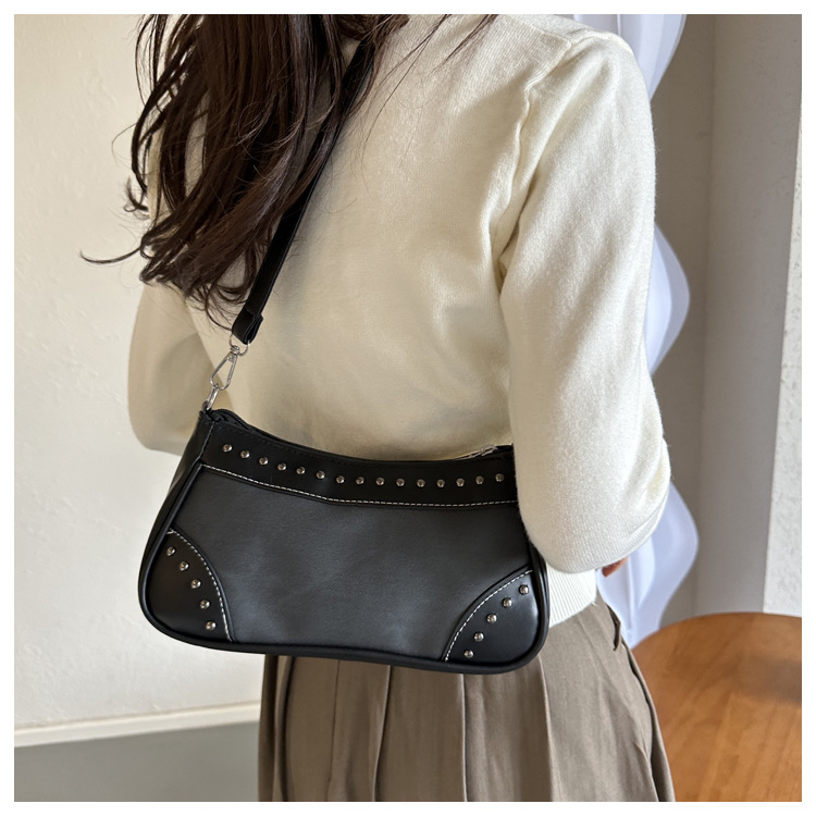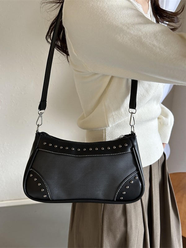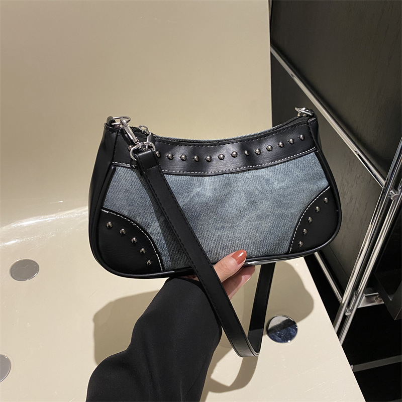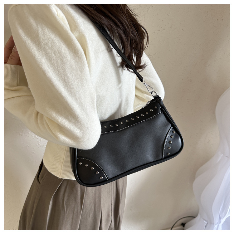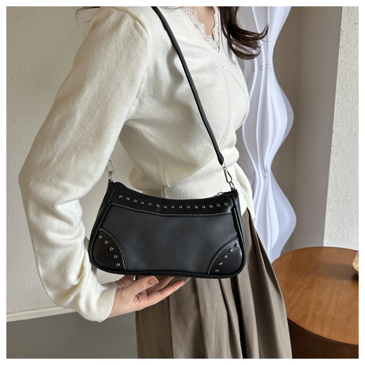 2025新款复古拼接时尚腋下包包女甜酷辣妹风铆钉机车包手提包
