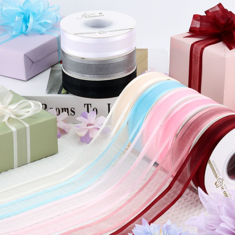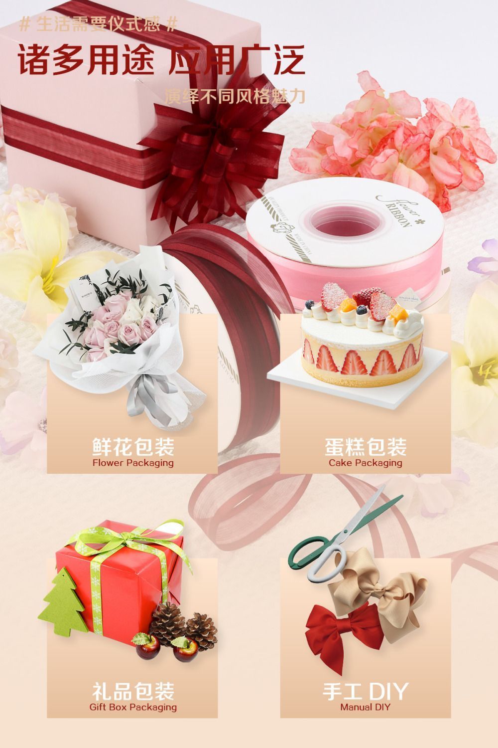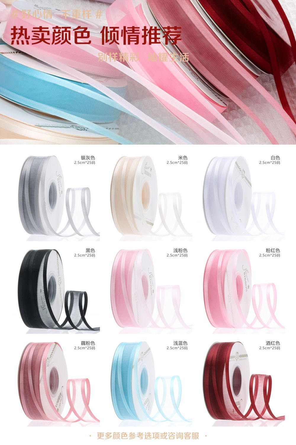 宽边雪纱丝带彩带鲜花2.5cm缎带花艺包装材料礼品蝴蝶结彩带织带