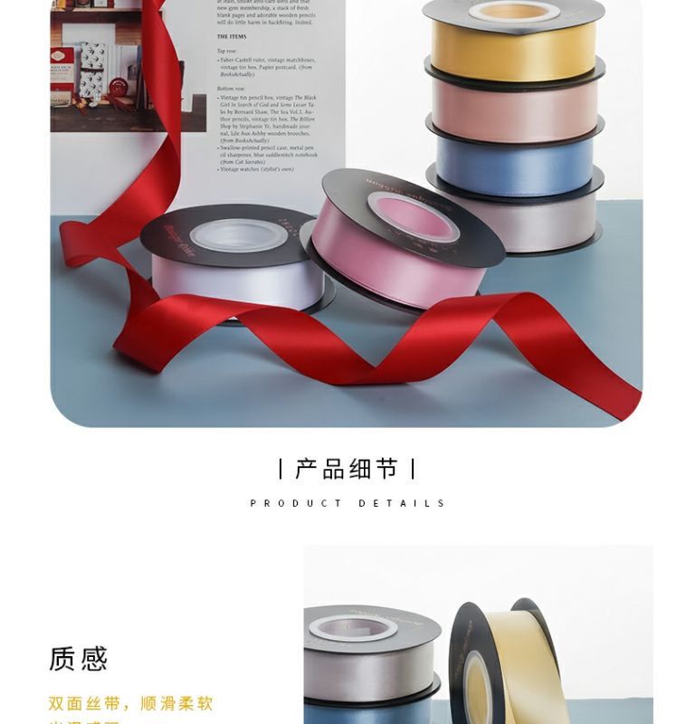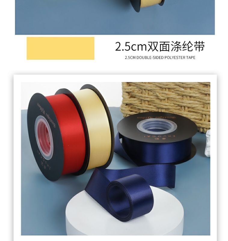 2.5cm双面涤纶丝带diy材料结婚礼品包装彩带花束蛋糕蝴蝶结带织带