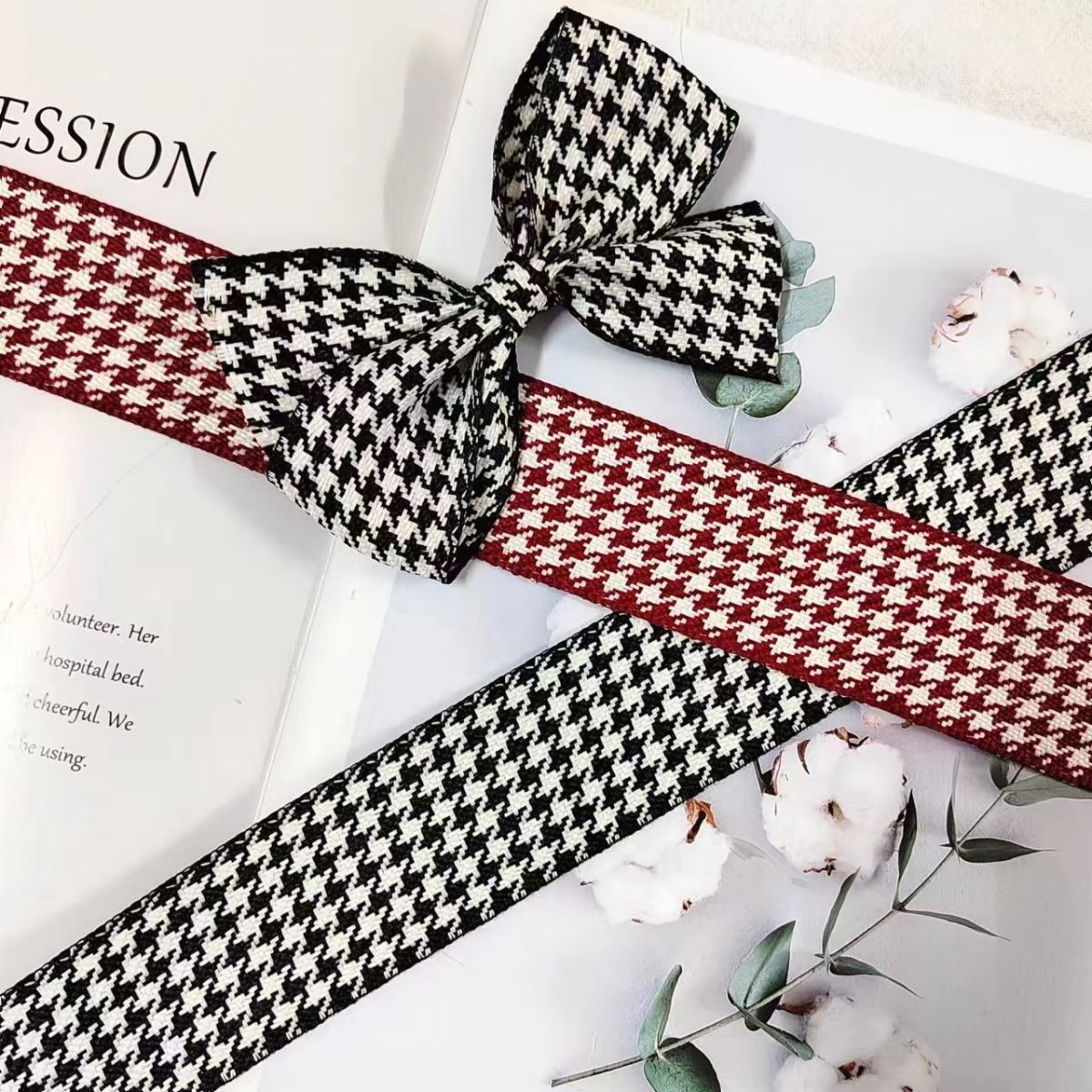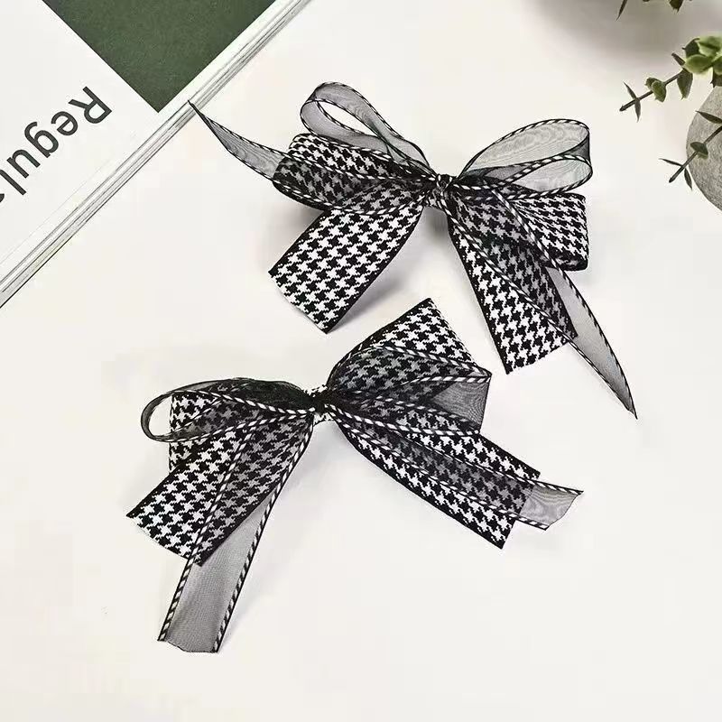 手工DIY蝴蝶结发饰发夹丝带材料饰品千鸟格织带蛋糕礼盒包装绑带