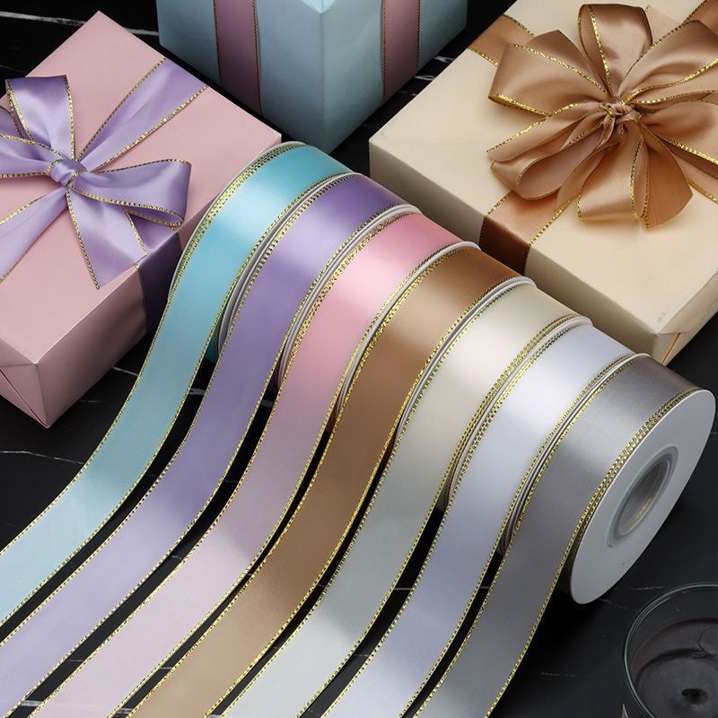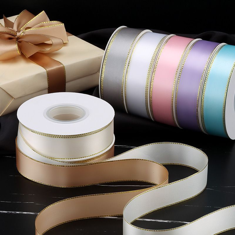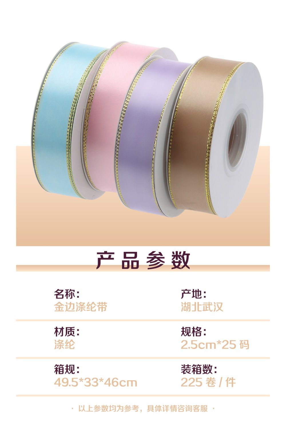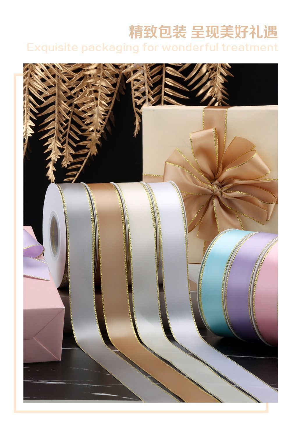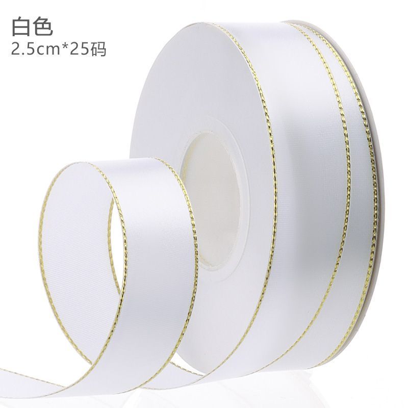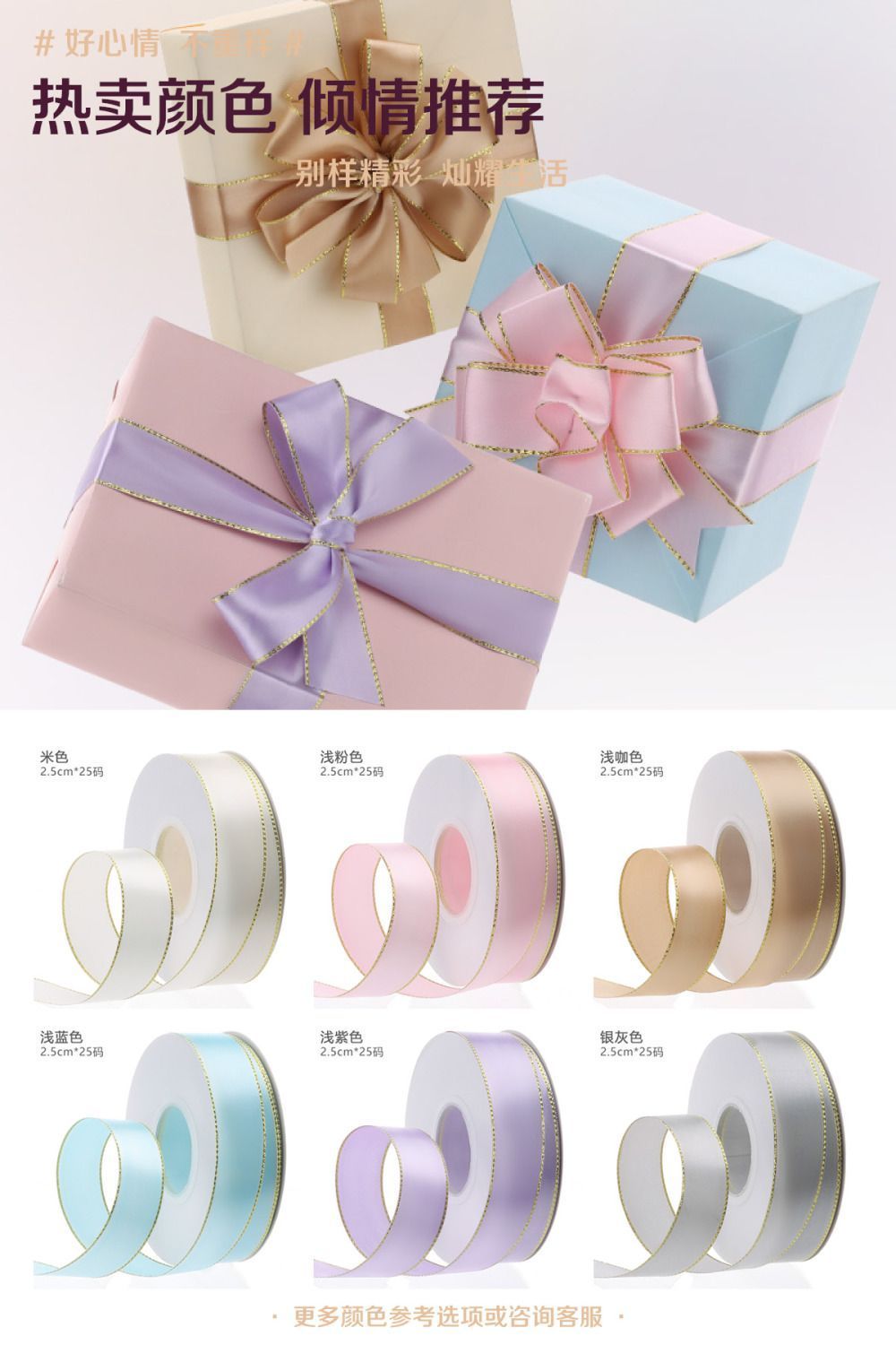 金边丝带纯色彩带鲜花2.5cm缎带花艺包装材料礼品蝴蝶结彩带织带