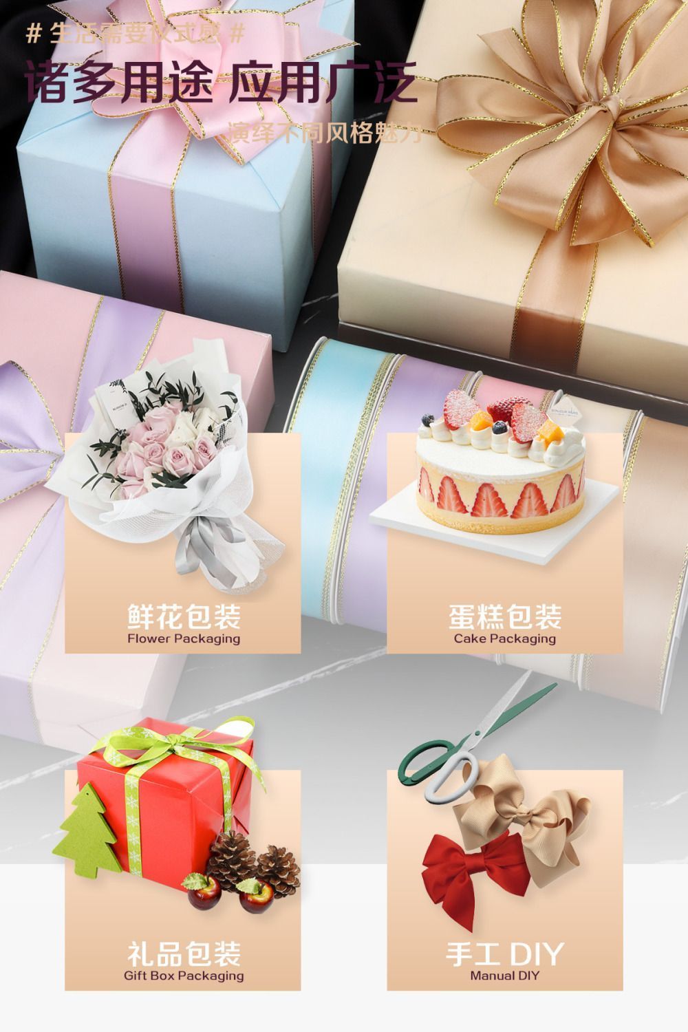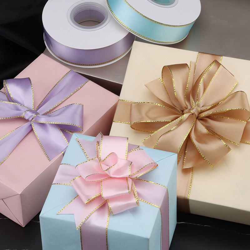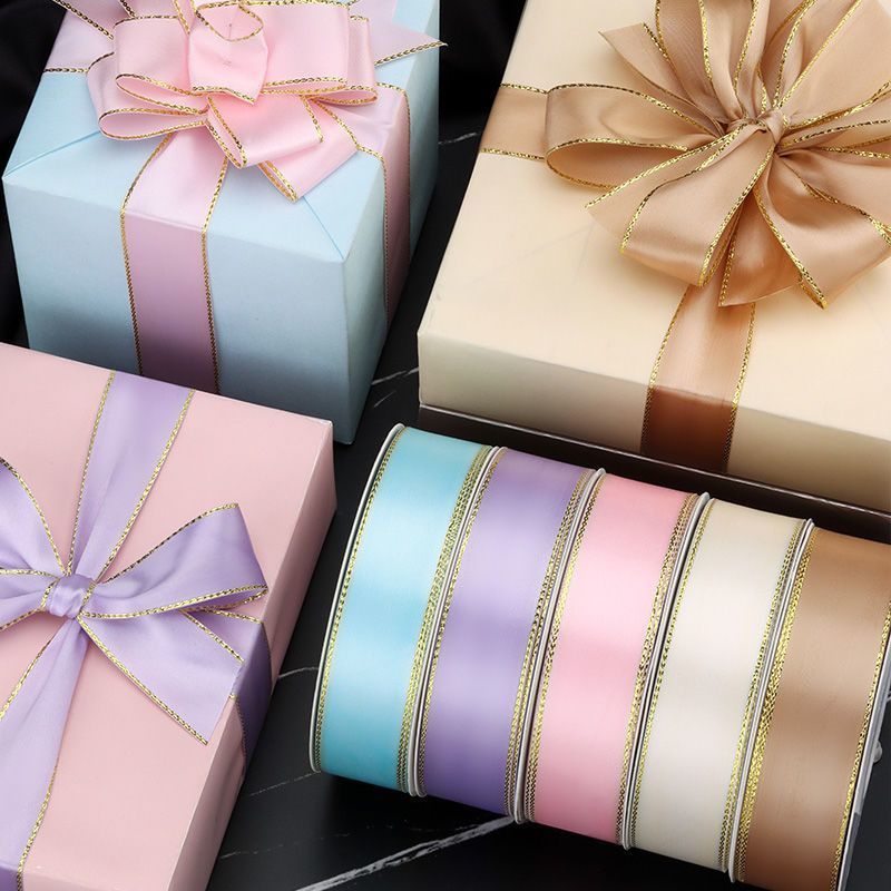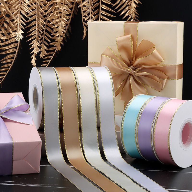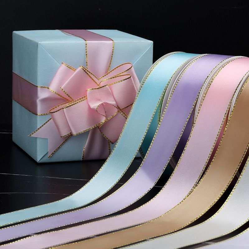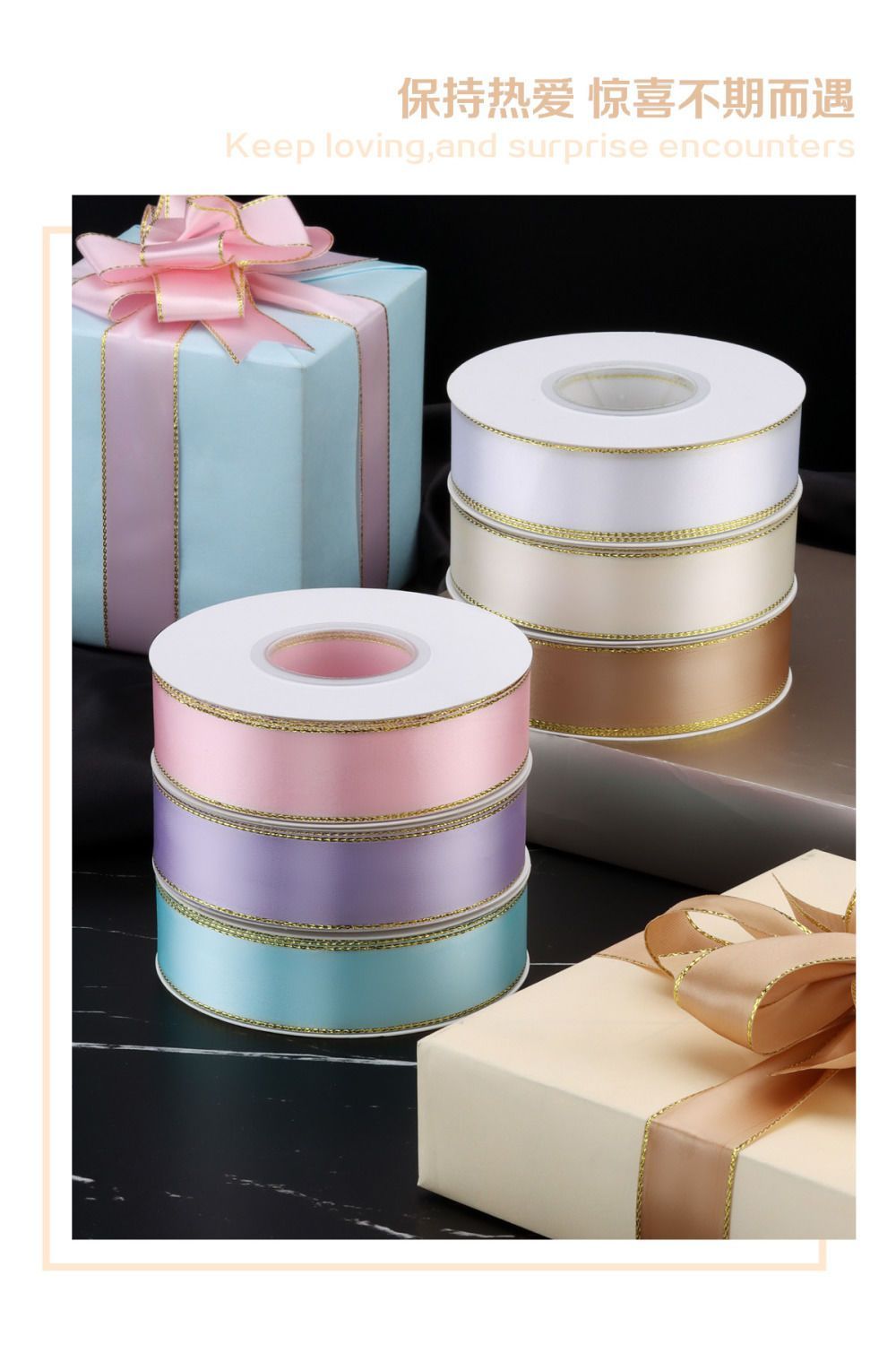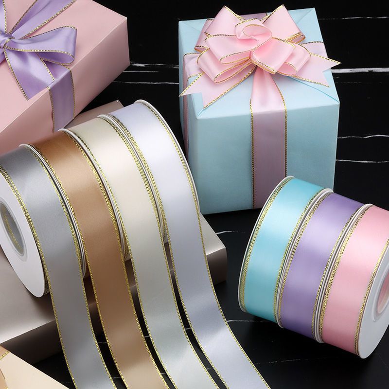 金边丝带纯色彩带鲜花2.5cm缎带花艺包装材料礼品蝴蝶结彩带织带