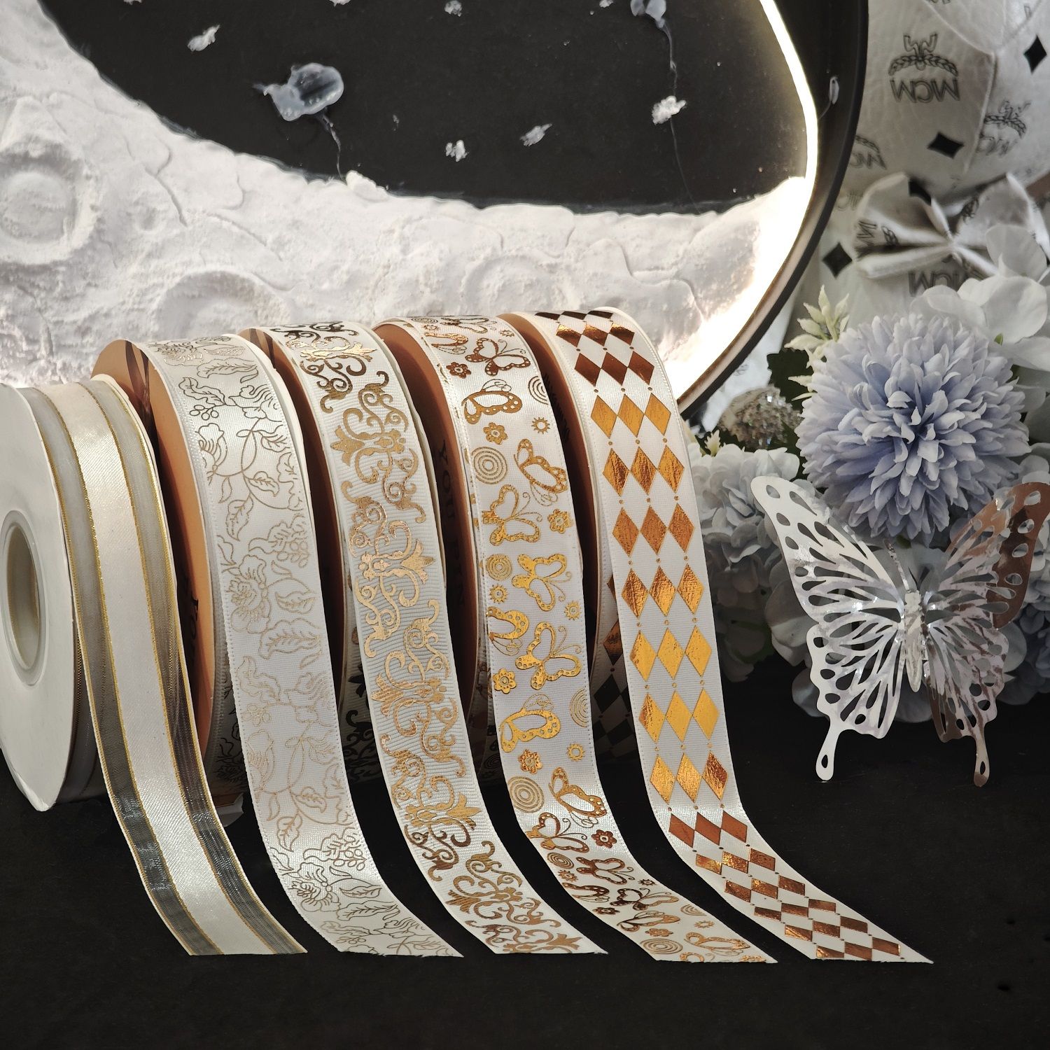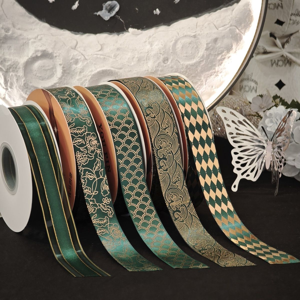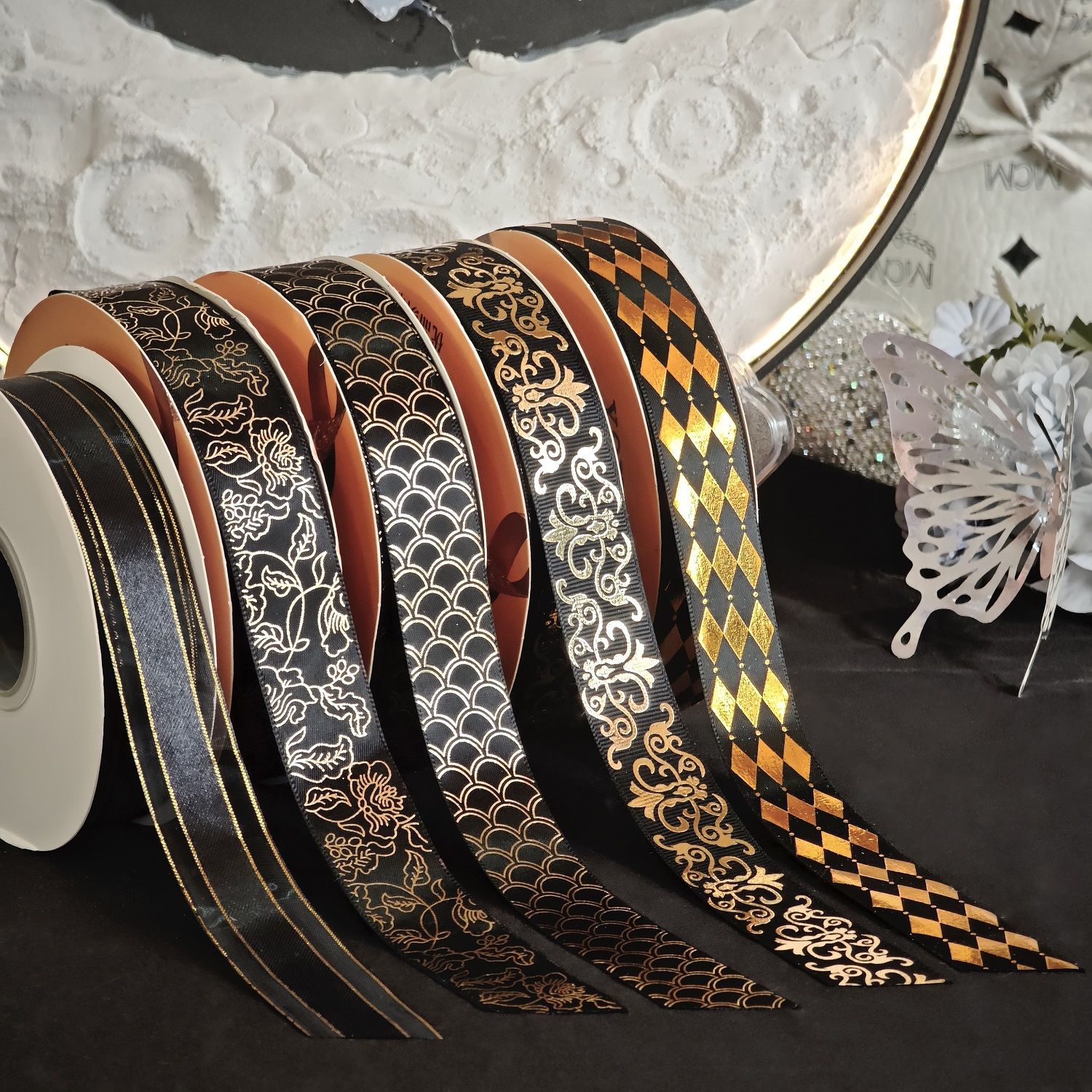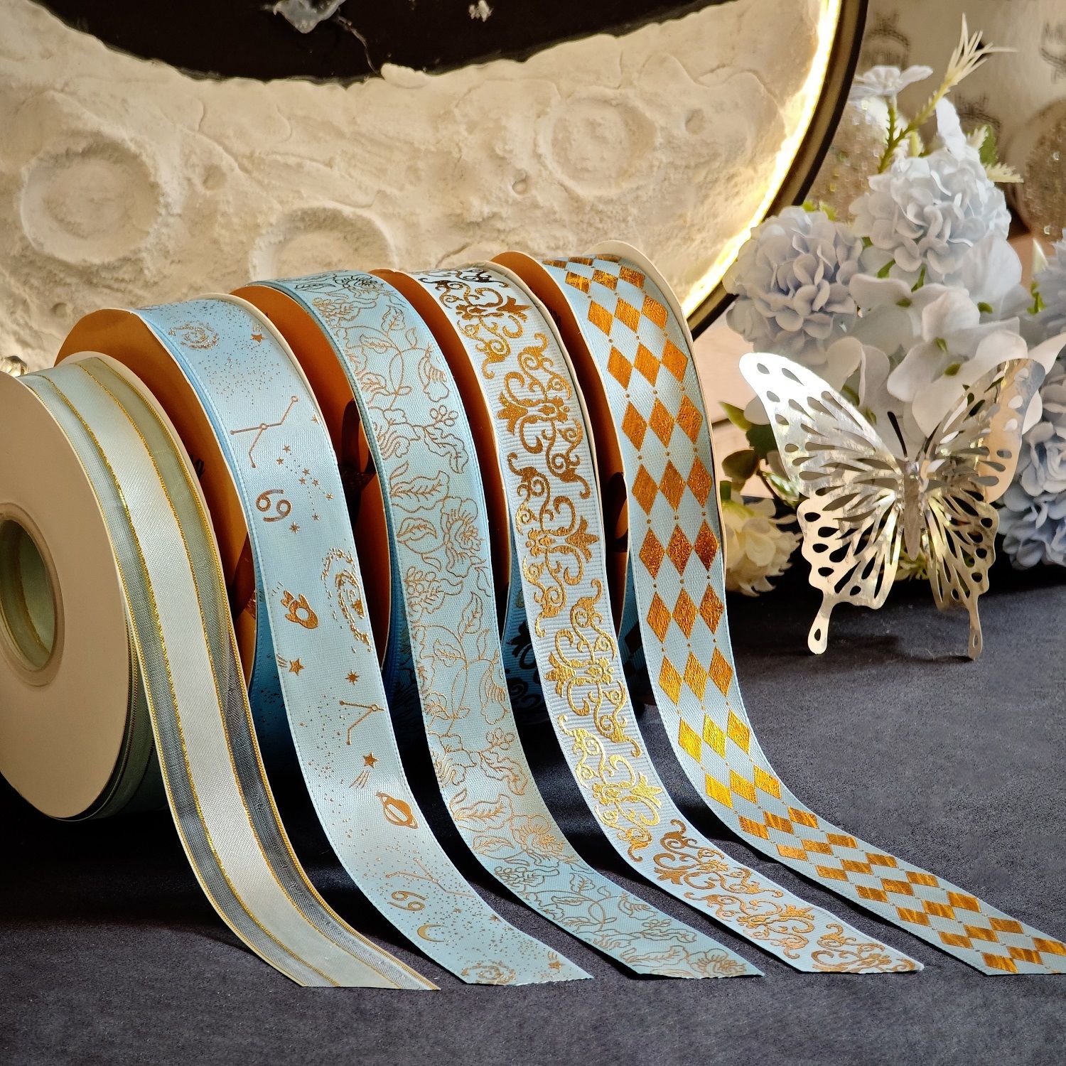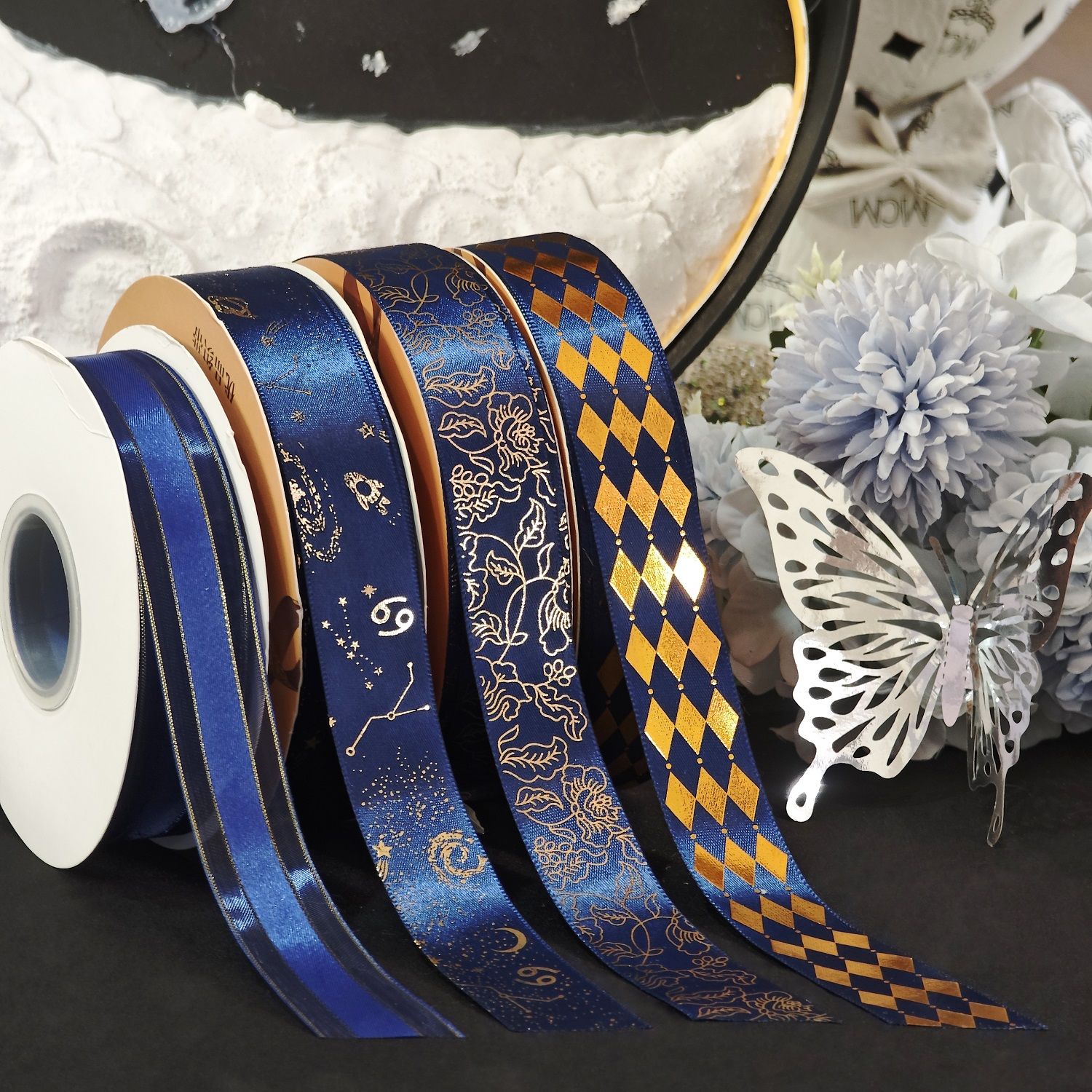烫金镭射手工diy材料丝带织带条痛包吧唧托藏蓝礼物礼品包装缎带