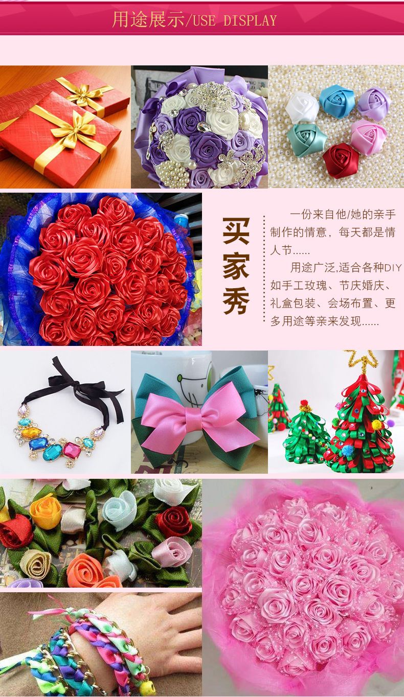 4cm宽缎带手工制作玫瑰花材料包装礼盒装饰彩带绸带织带丝带批发