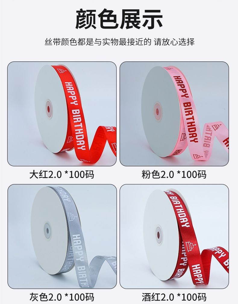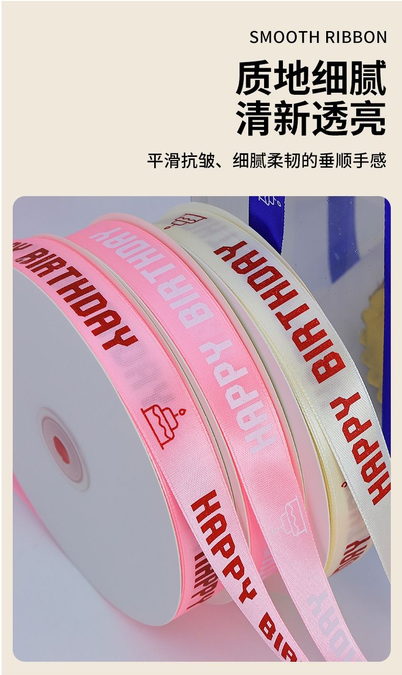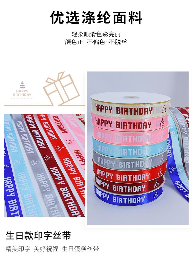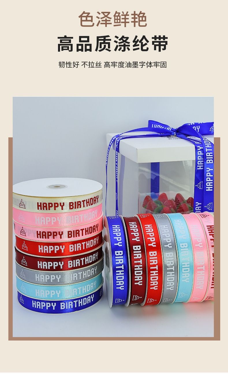 2cm烘焙包装织带英文生日大字母生日蛋糕礼盒鲜花印字HAPPY缎带