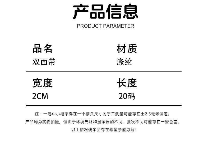 | double-sided width 2cm [18 m long] package(双面宽2cm【长18米】卷装) | USD $2.01 | 999999 piece available |
