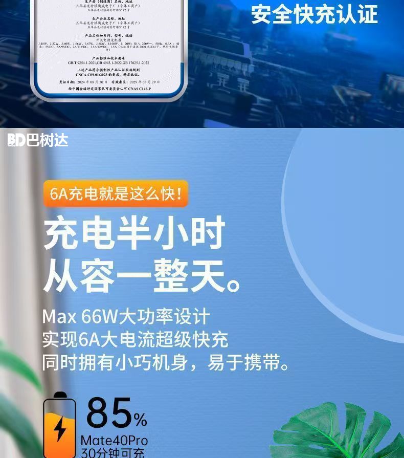 120W超级快充适用华为充电器小米OPPO安卓闪充数据线充电头充电线