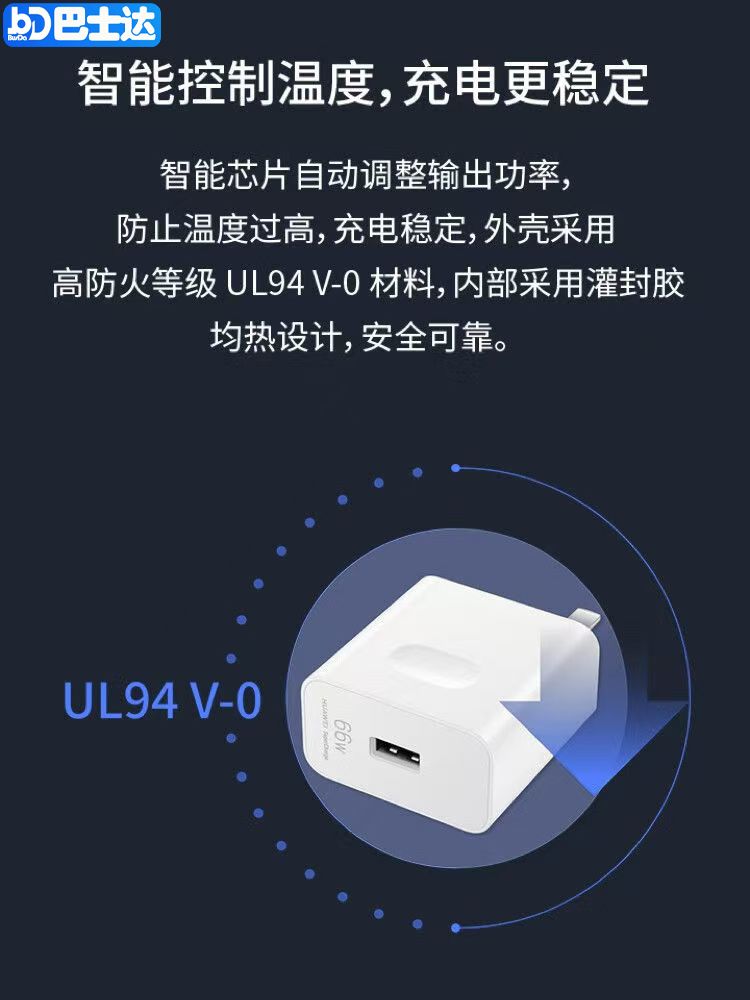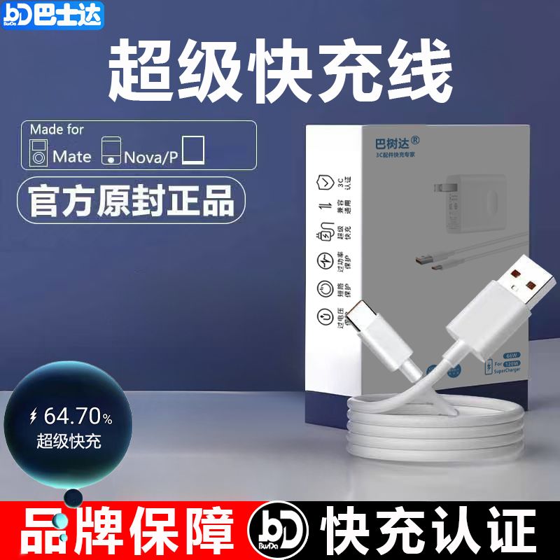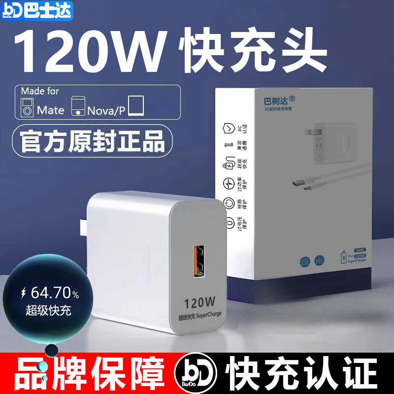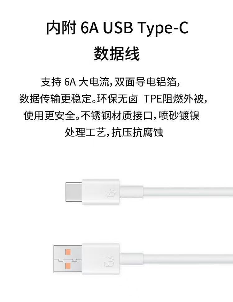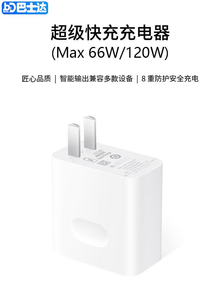 适用OPPO120W超级快充头荣耀小米通用充电器typec手机数据线闪充