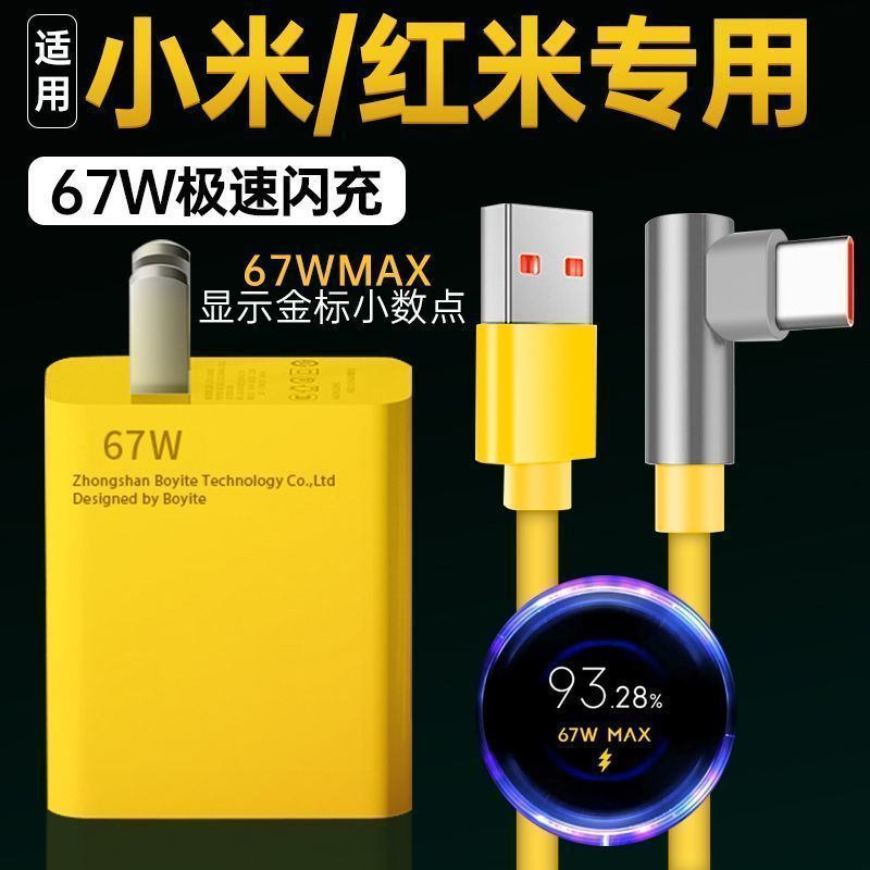 适用小米67W充电器闪充数据线金标小数点红米K40/5012pro/11u套装