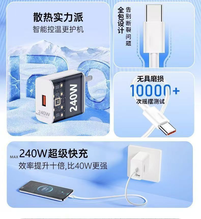 适用华为充电器240W超级快充头快充线120W数据线荣耀安卓小米通用
