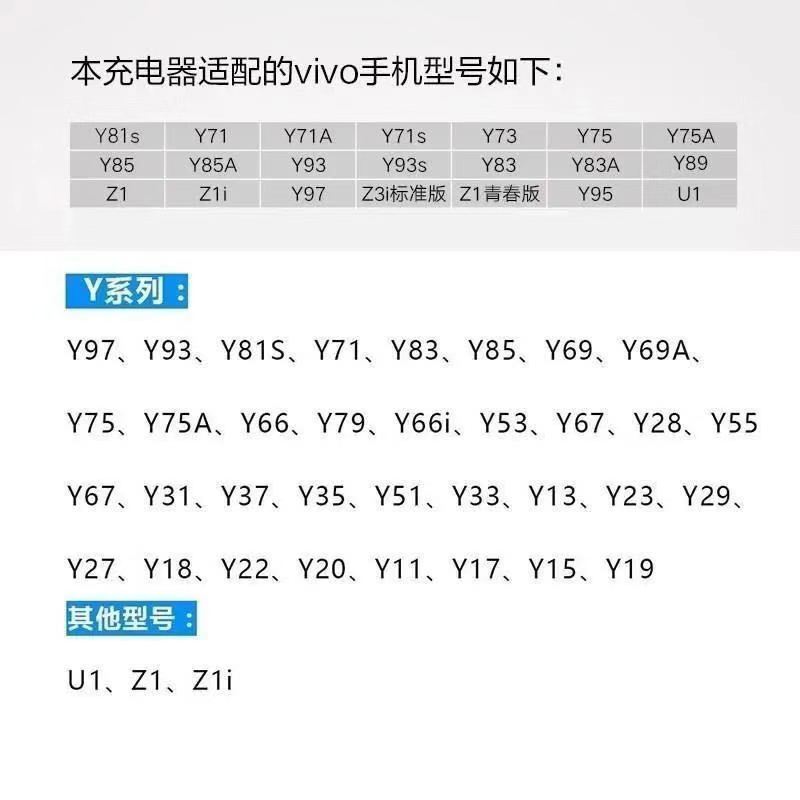 适用vivo快充Y93Y81Y83Y85Y75Y97充电器Z1Y66Y67充电线数据线