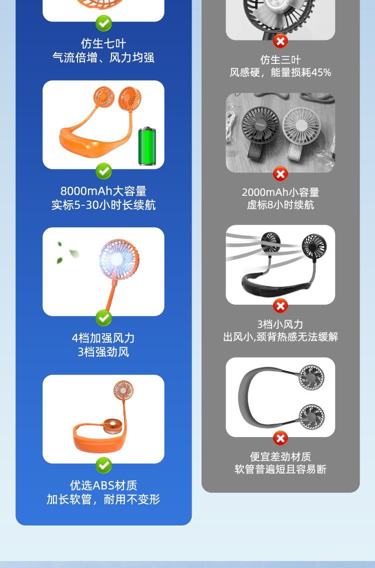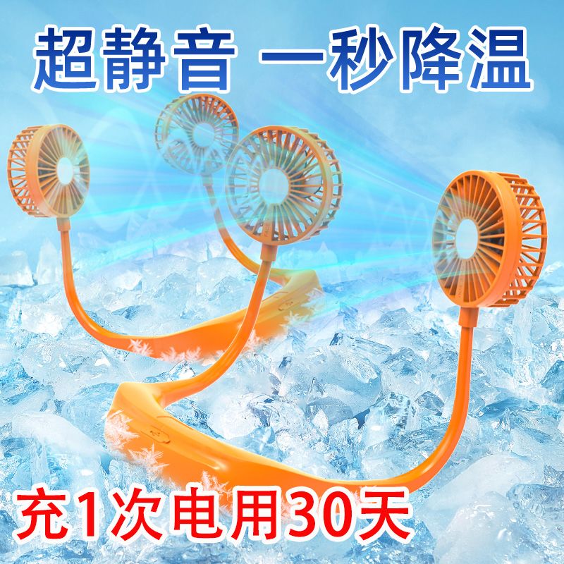 13000M新款挂脖式小风扇户外制冷大风力工地工人静音高温避暑神器