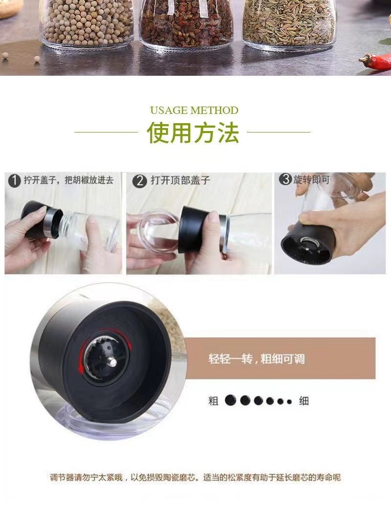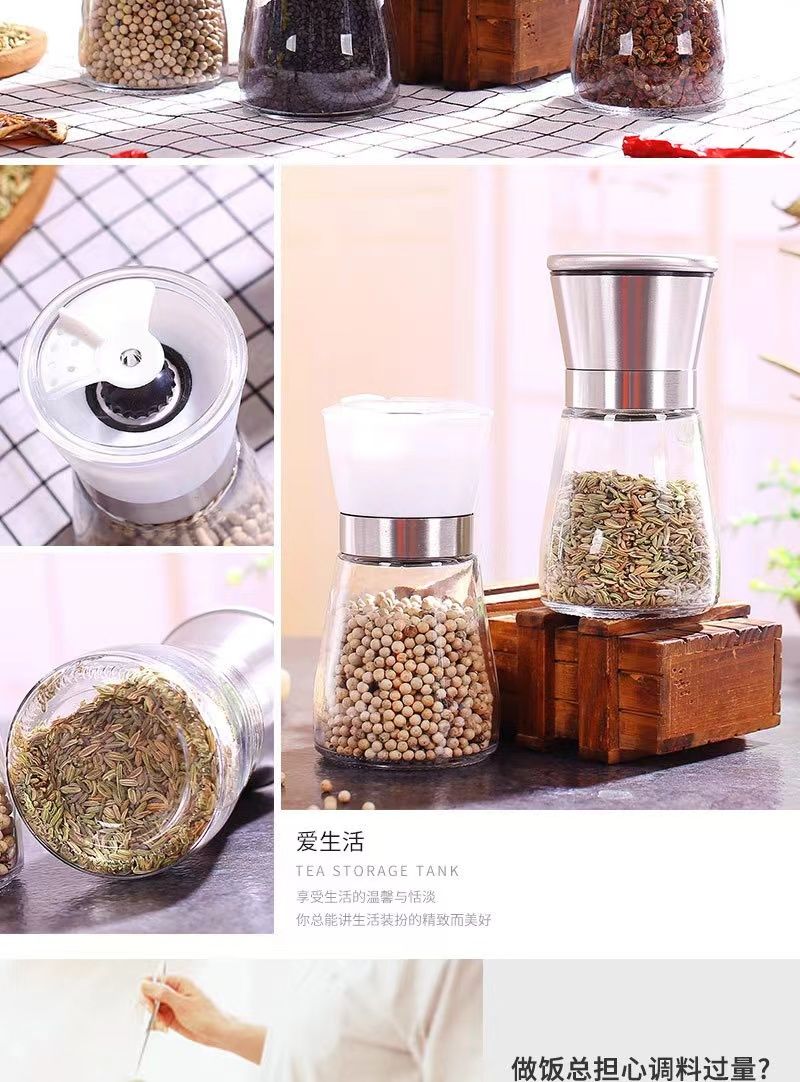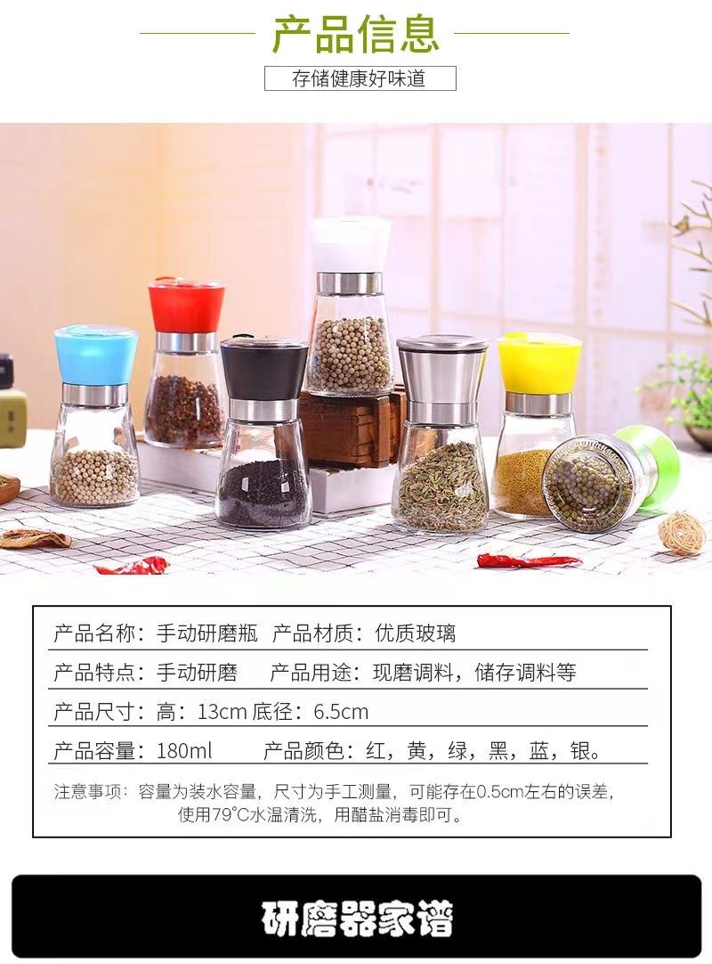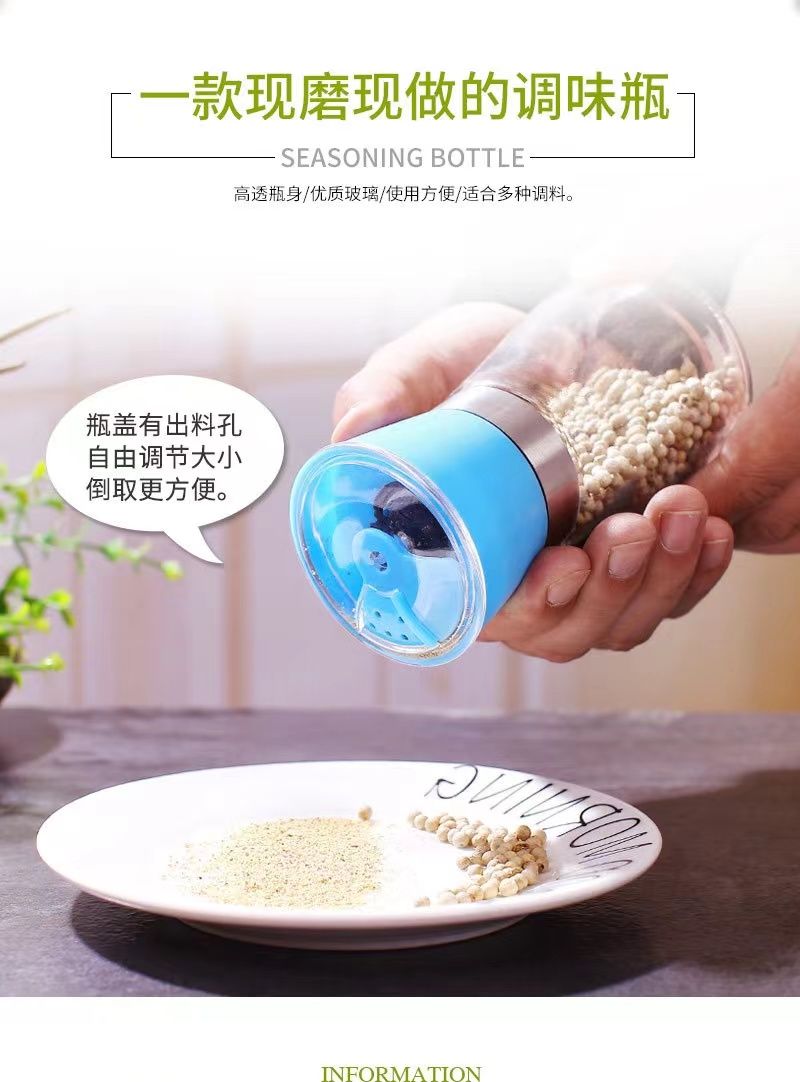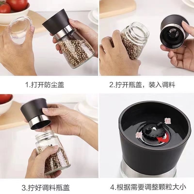 胡椒研磨器花椒粒研磨瓶黑白胡椒粉磨粉神器家用手动可调节研磨瓶