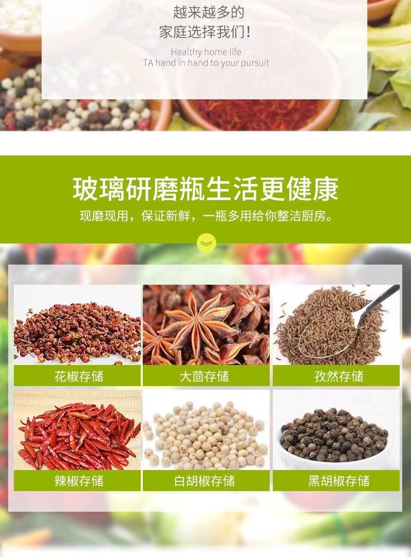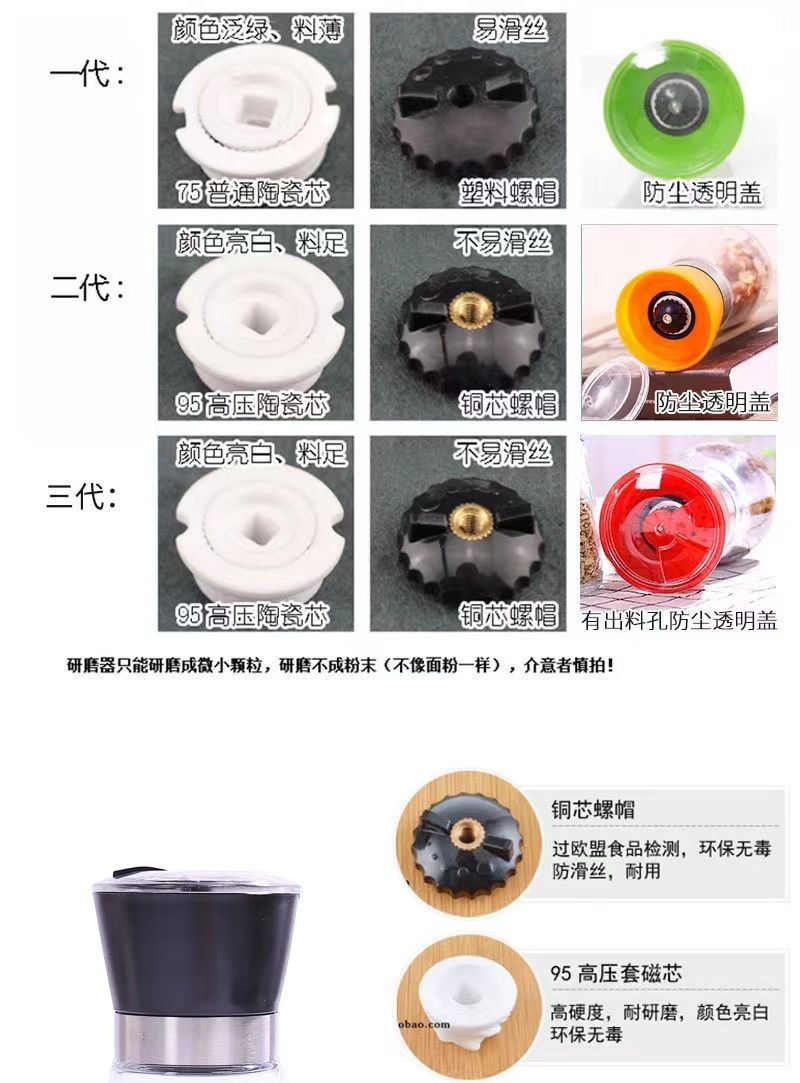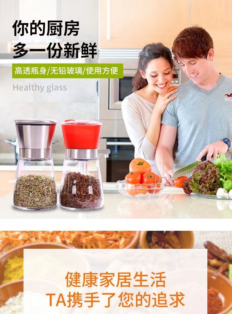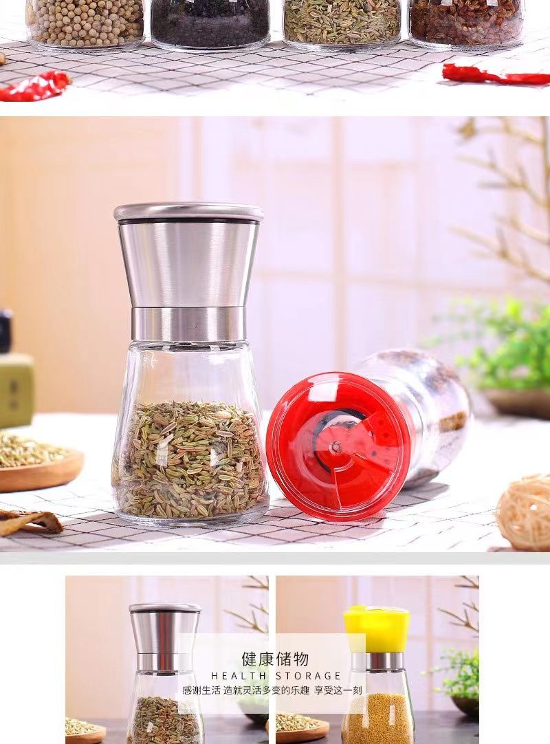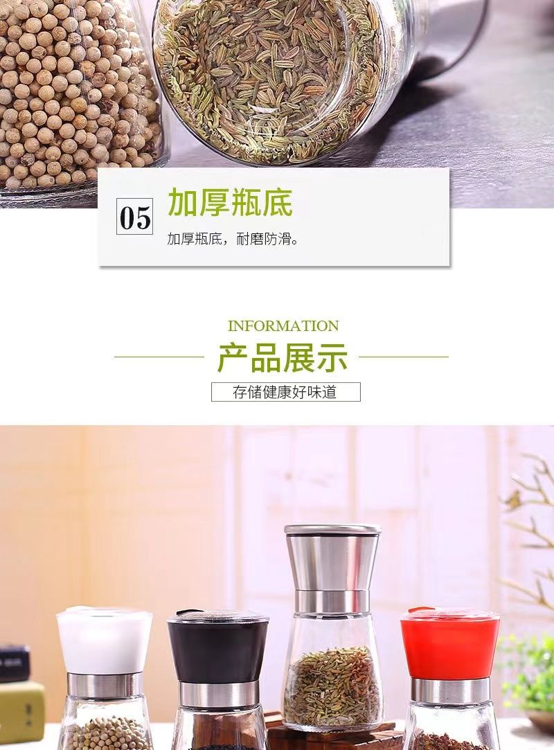 胡椒研磨器花椒粒研磨瓶黑白胡椒粉磨粉神器家用手动可调节研磨瓶