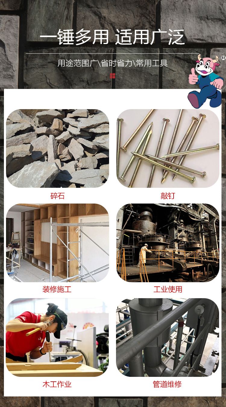 八角锤石工锤多功能重型铁锤木柄重型砸墙拆墙榔头工具实心大铁锤