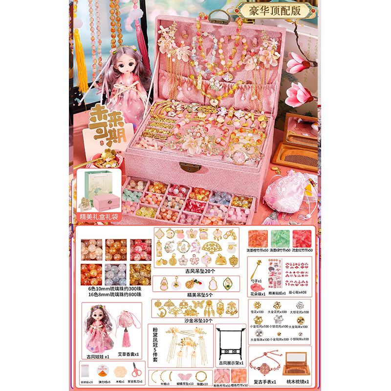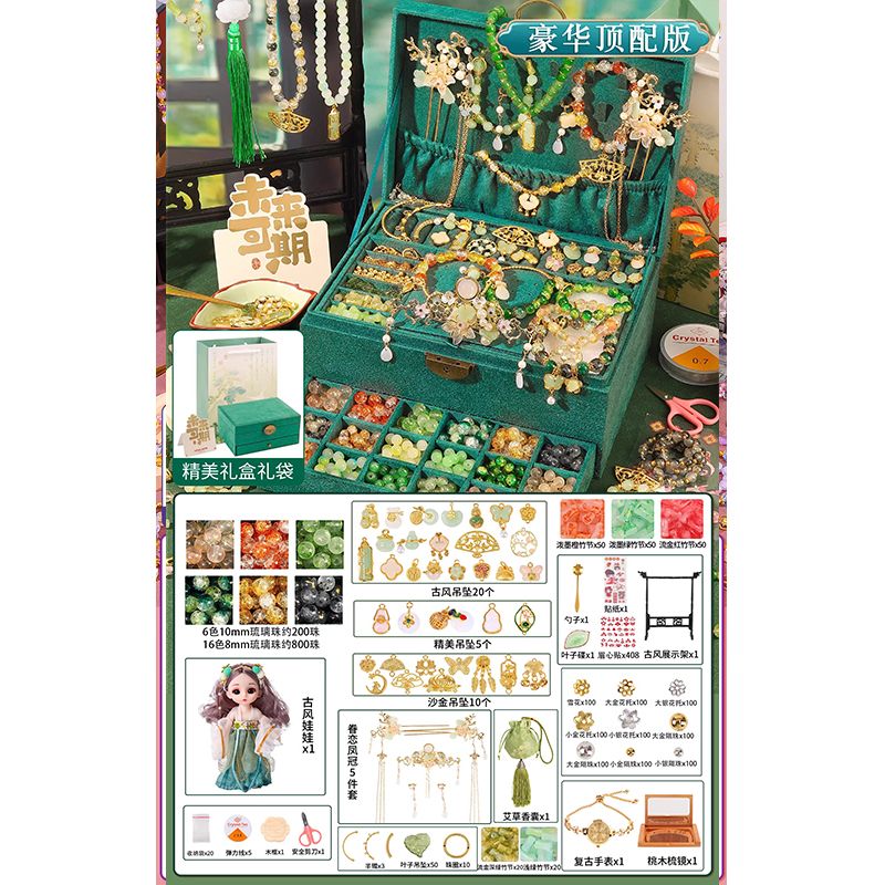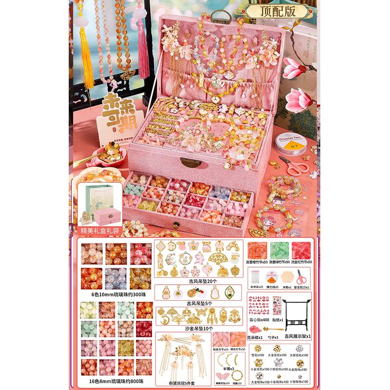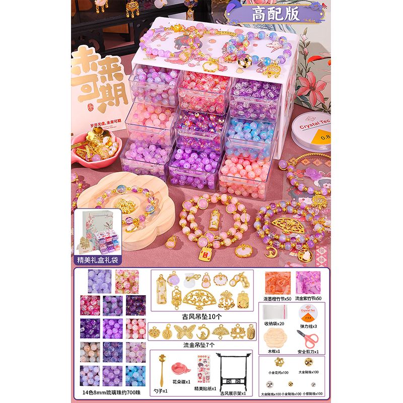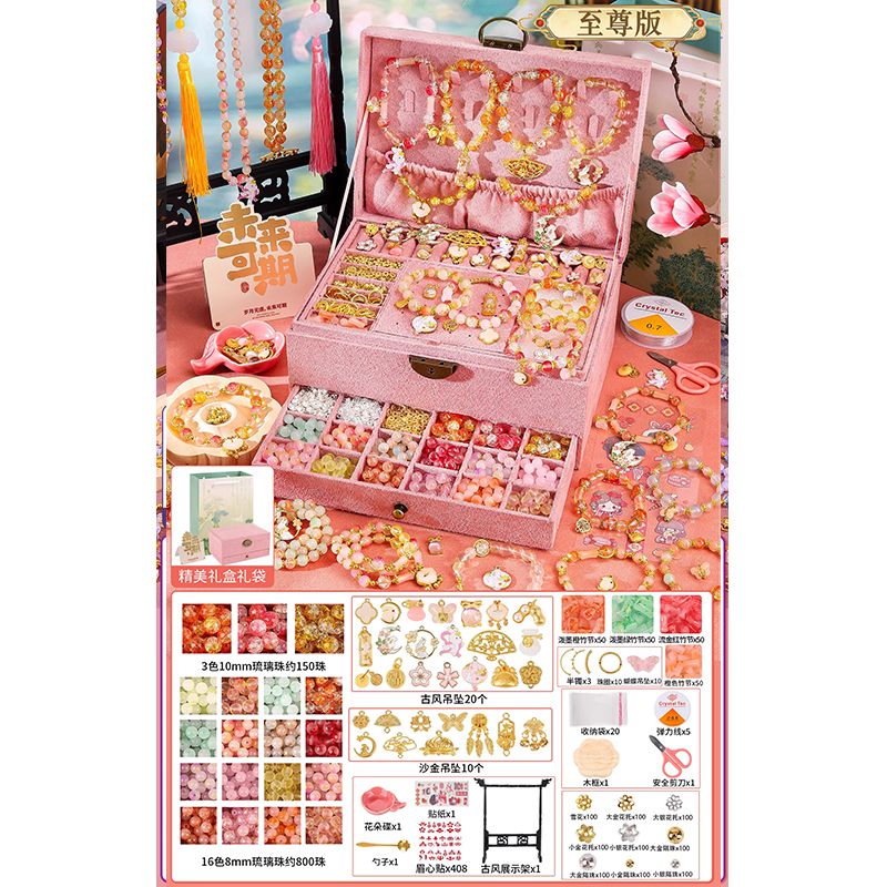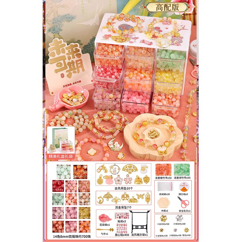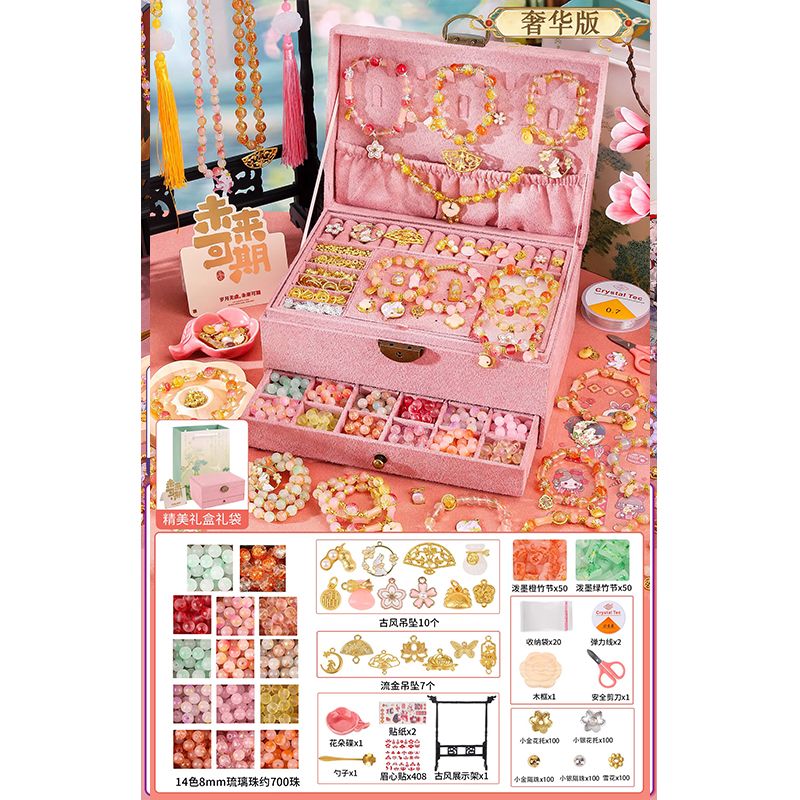 生日礼物女孩diy手链串珠礼盒手工材料玩具首饰盒琉璃穿珠子古风6