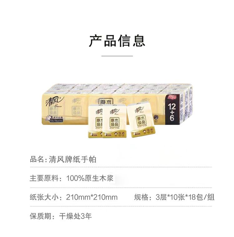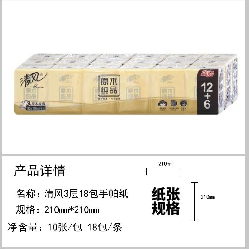 清风手帕纸原木纯品小包随身便携式卫生纸学生面巾纸批发餐巾纸