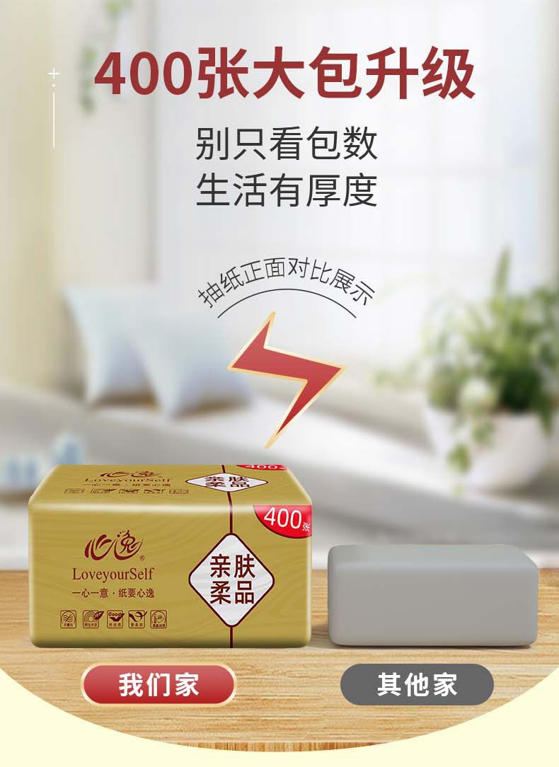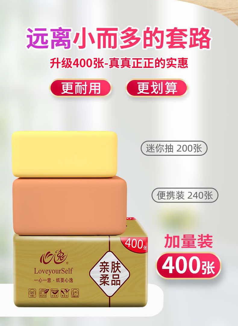 心逸400张/包原木纸巾面巾纸抽纸餐巾纸抽家用卫生纸擦手纸批发