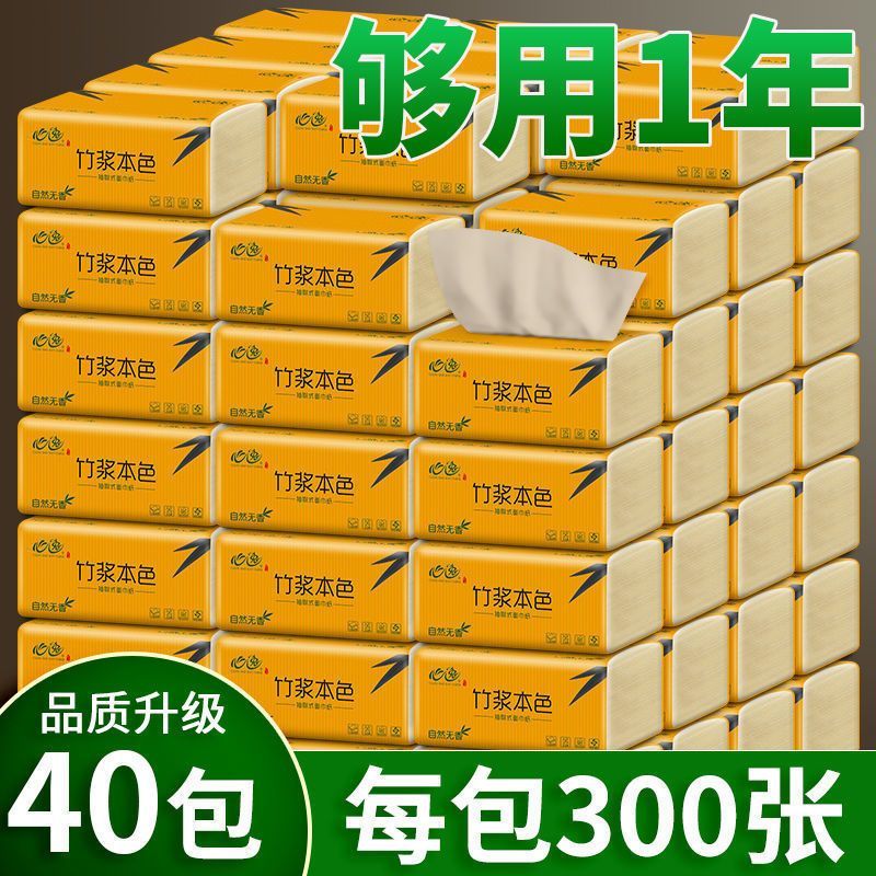心逸40包竹浆本色抽纸面巾纸抽卫生纸巾餐巾纸家庭装10包擦手纸