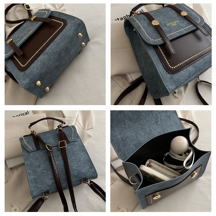 旅行背包新款复古小众百搭双肩包设计包包时尚手提外出单肩书包潮