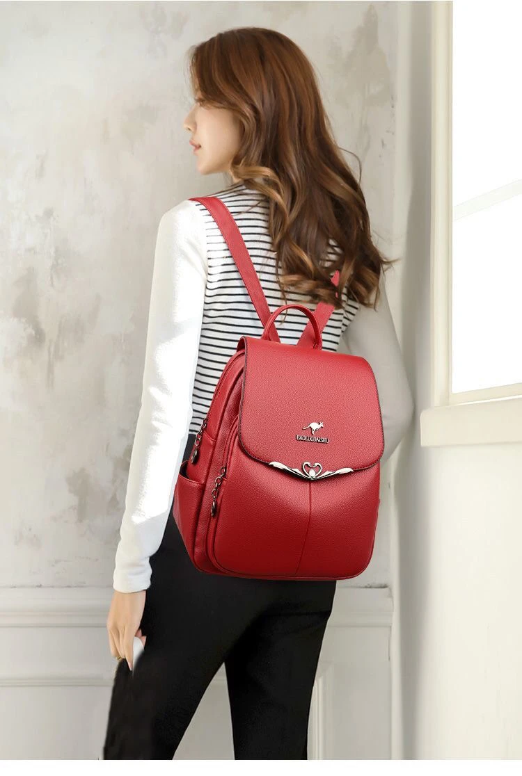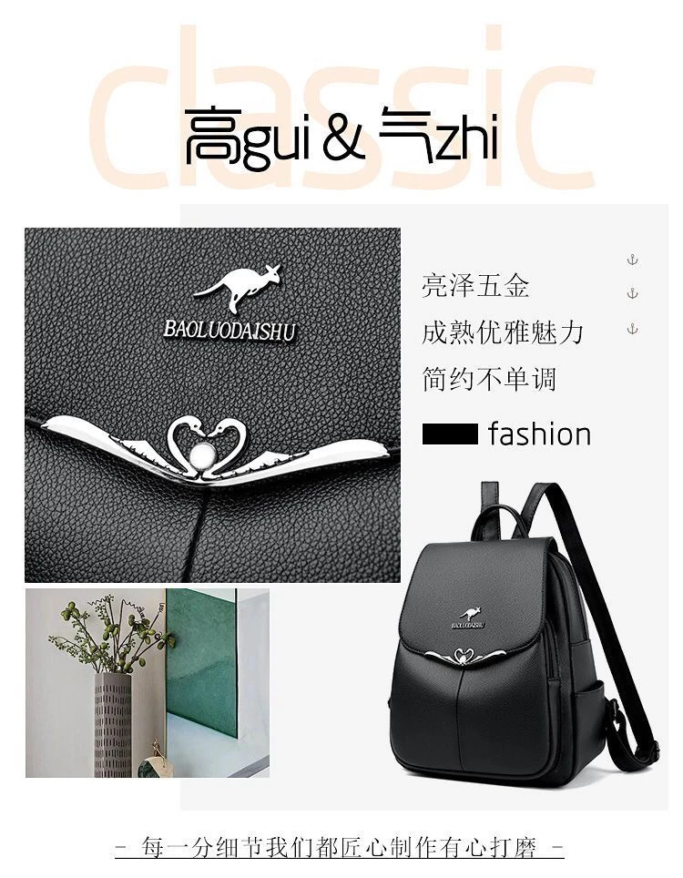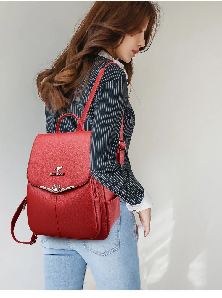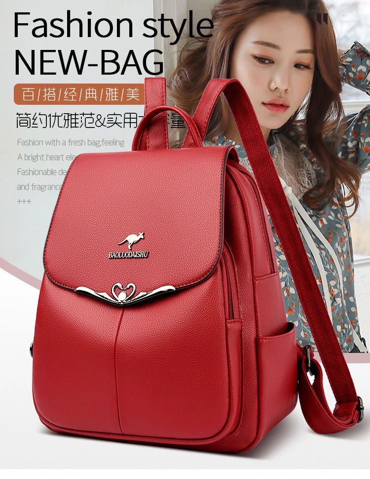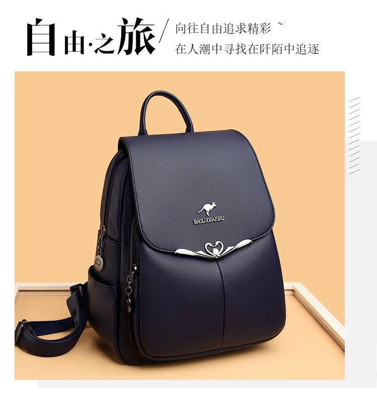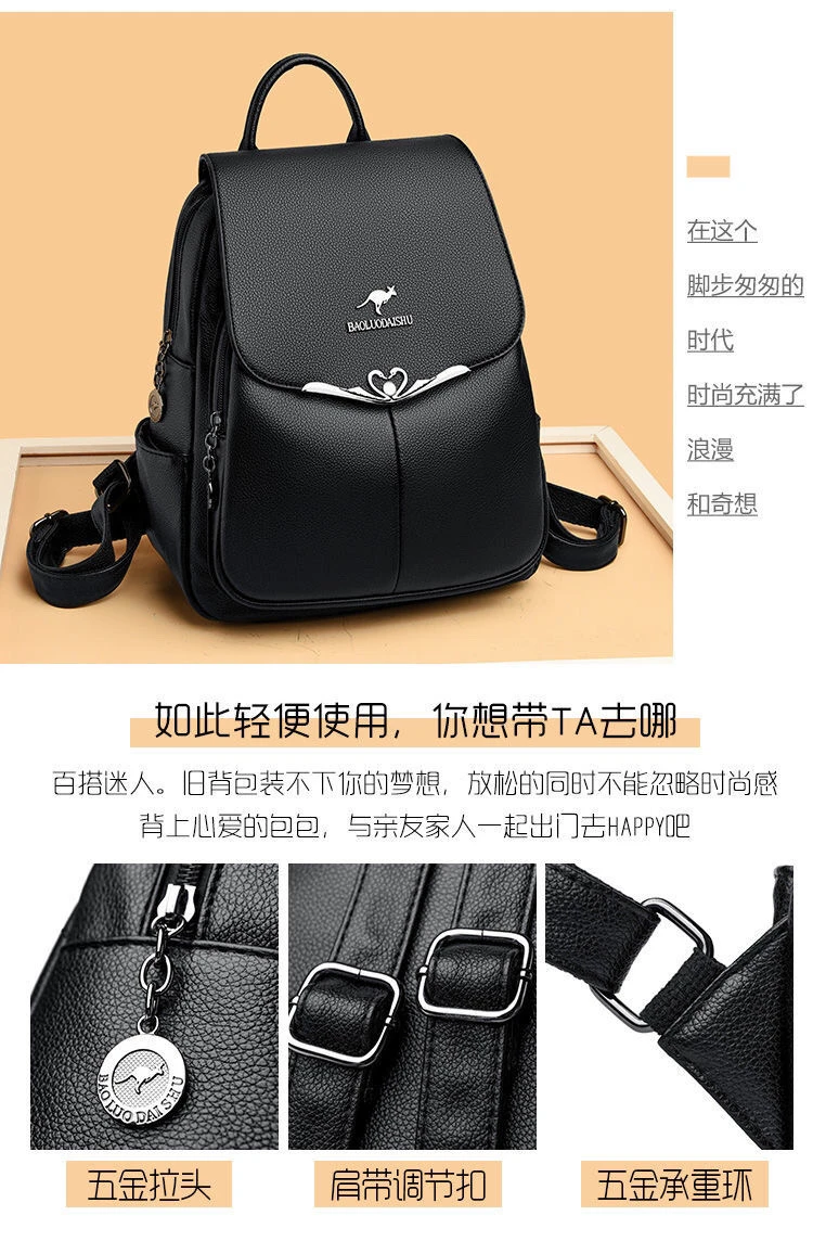 堡萝袋鼠正品真皮双肩包女2022新款大容量时尚百搭软皮女士旅行包