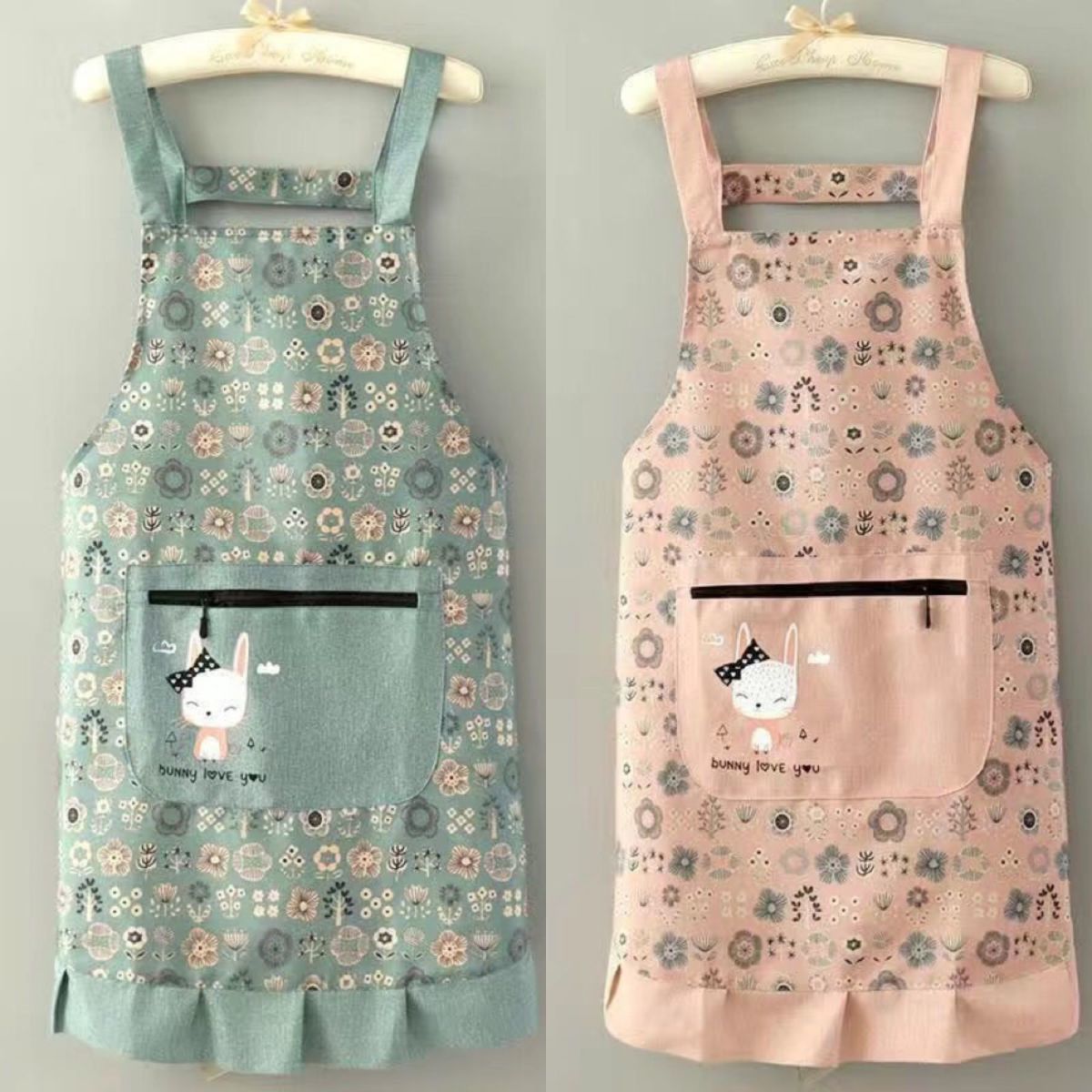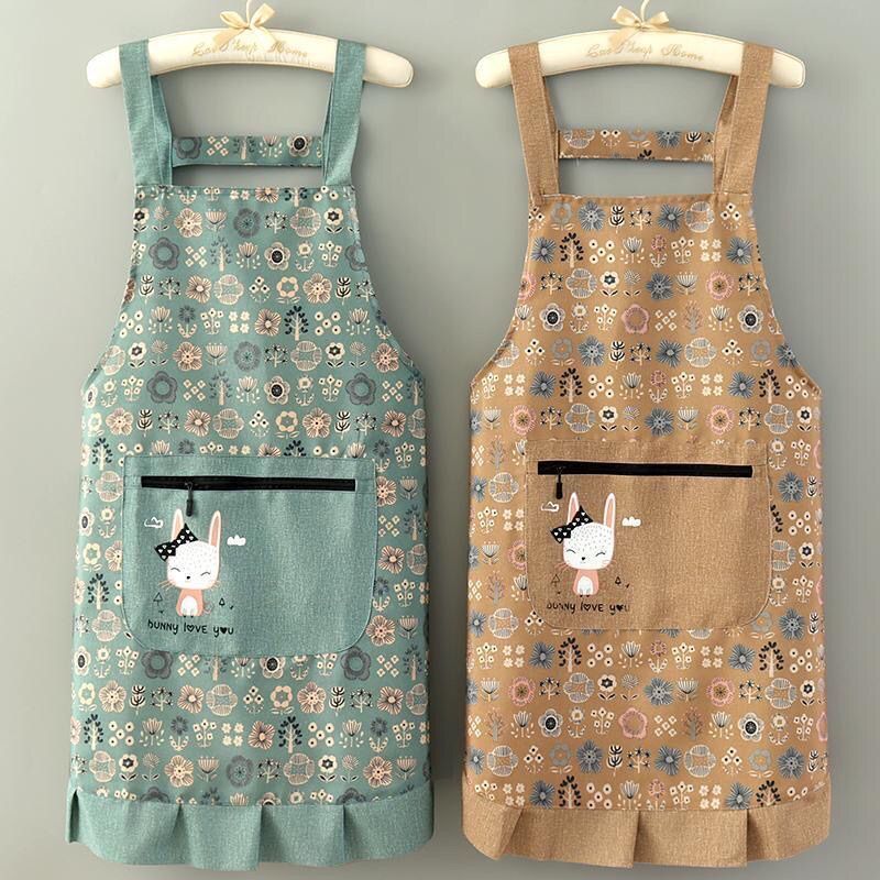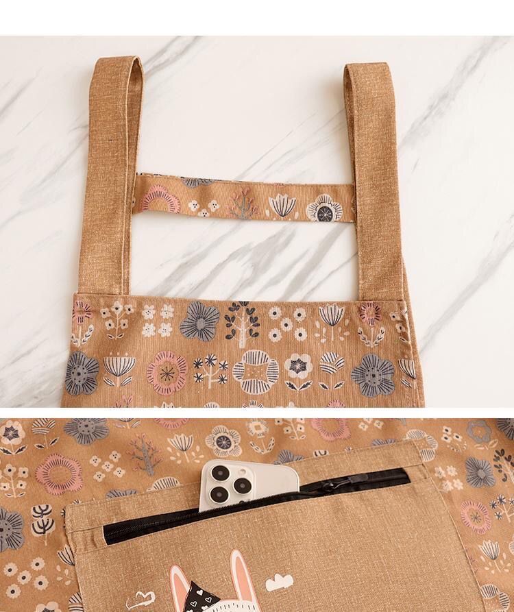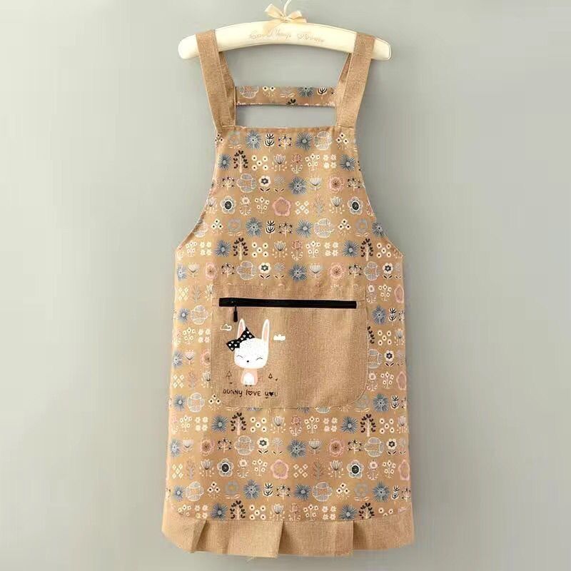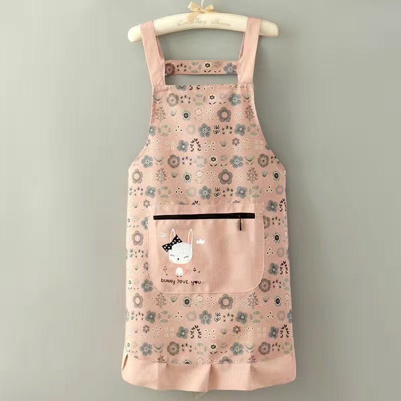 新款可爱帆布围裙厨房防污家用耐磨上班透气围腰做饭