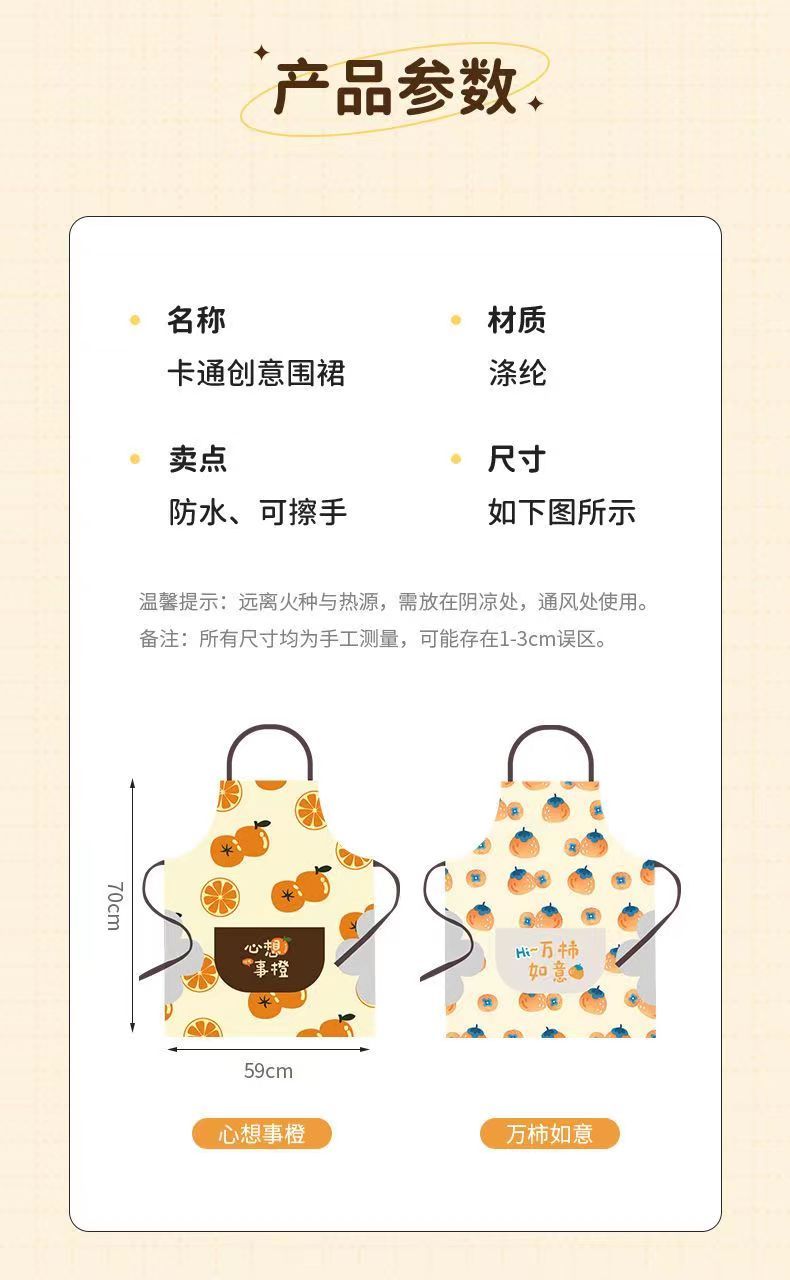时尚高档围裙厨房家用围腰心想柿橙可爱防水防油耐磨耐脏做家务穿