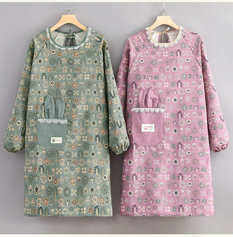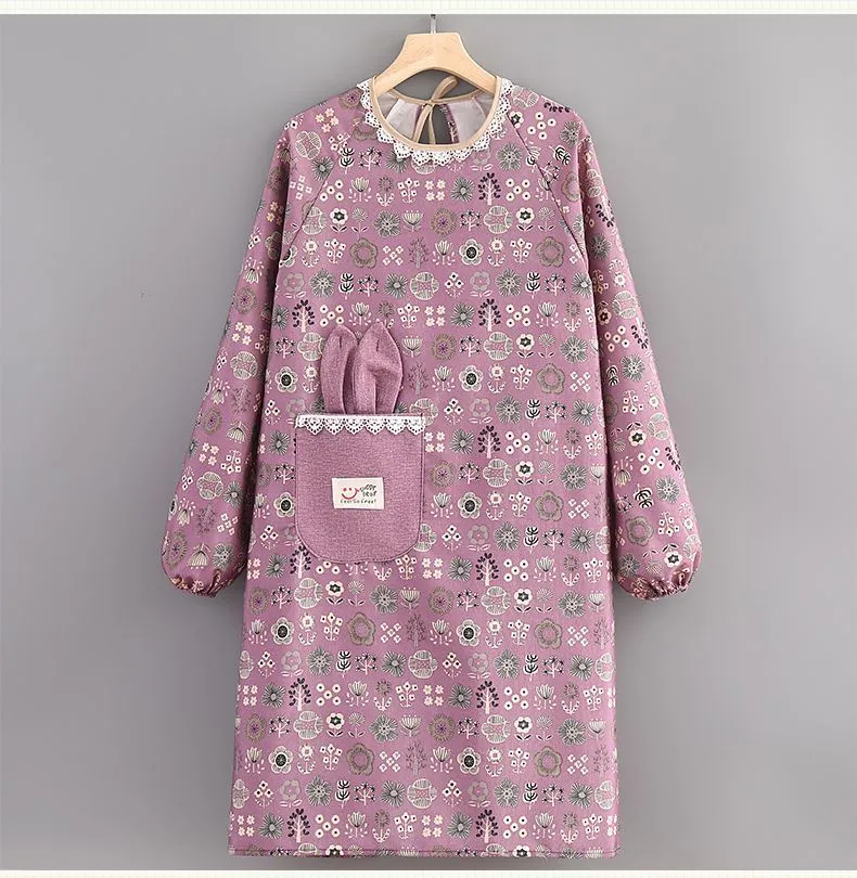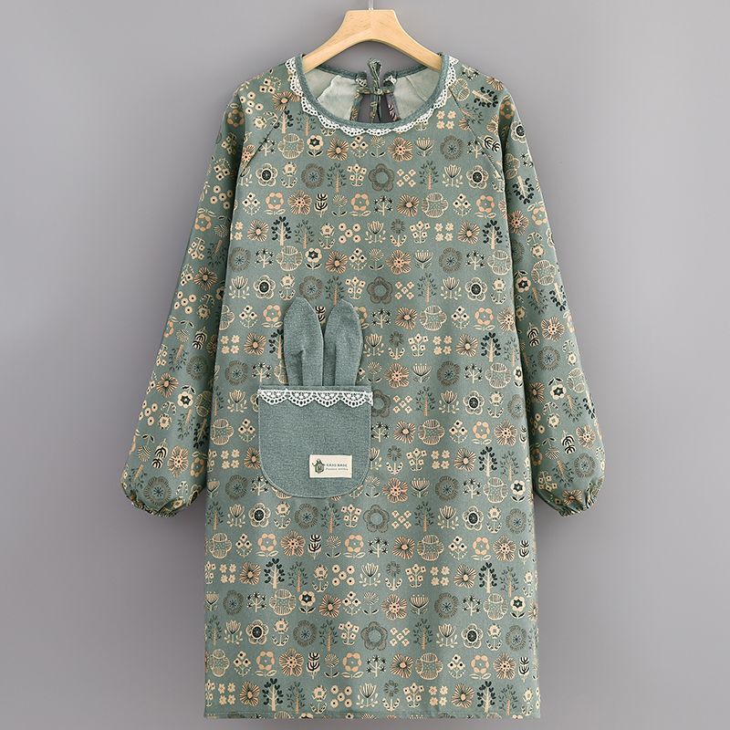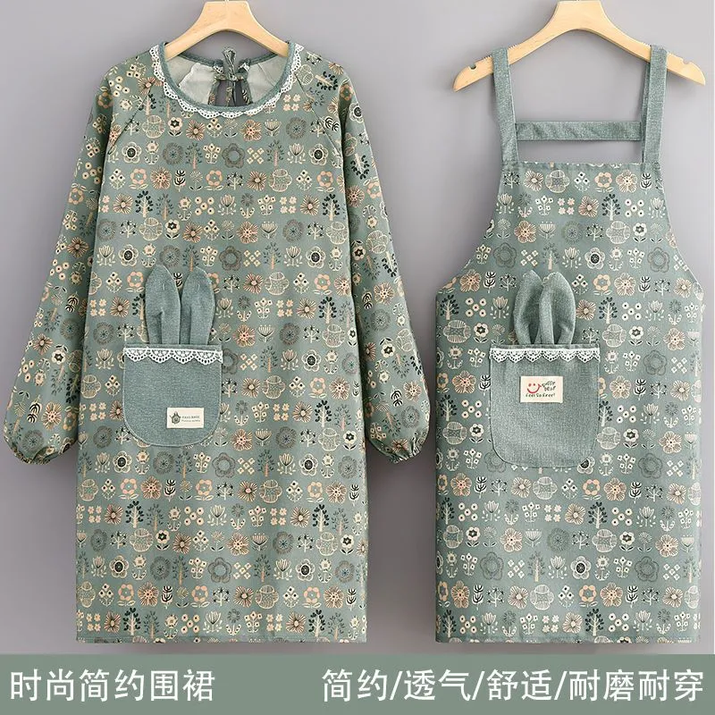长袖帆布围裙厨房专用做饭洋气透气网红妈咪罩衣围裙上班打工女