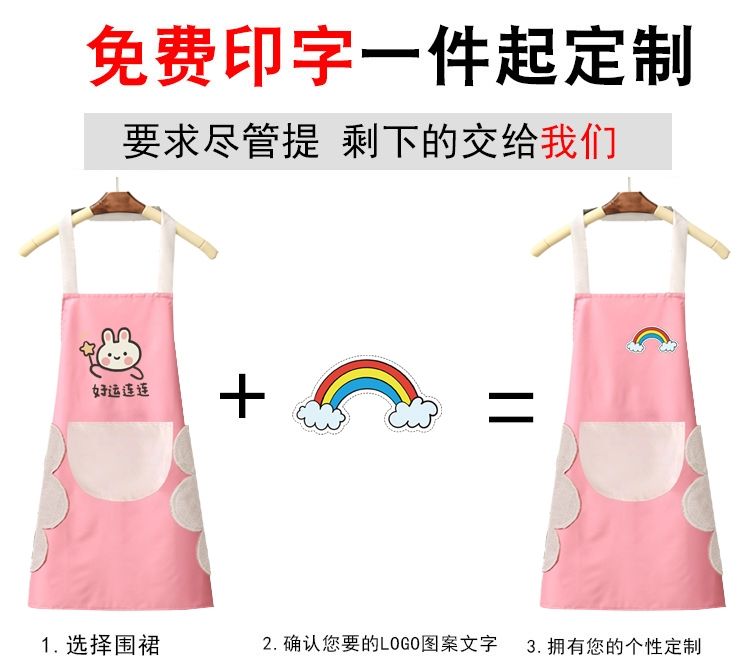 时尚新款防水防油围裙家用厨房做饭男女工作服可爱定制围腰印字