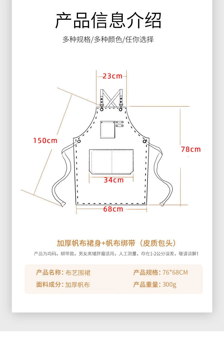 帆布围裙网红定制LOGO时尚园艺画画理发加厚工作服奶茶店牛仔男女