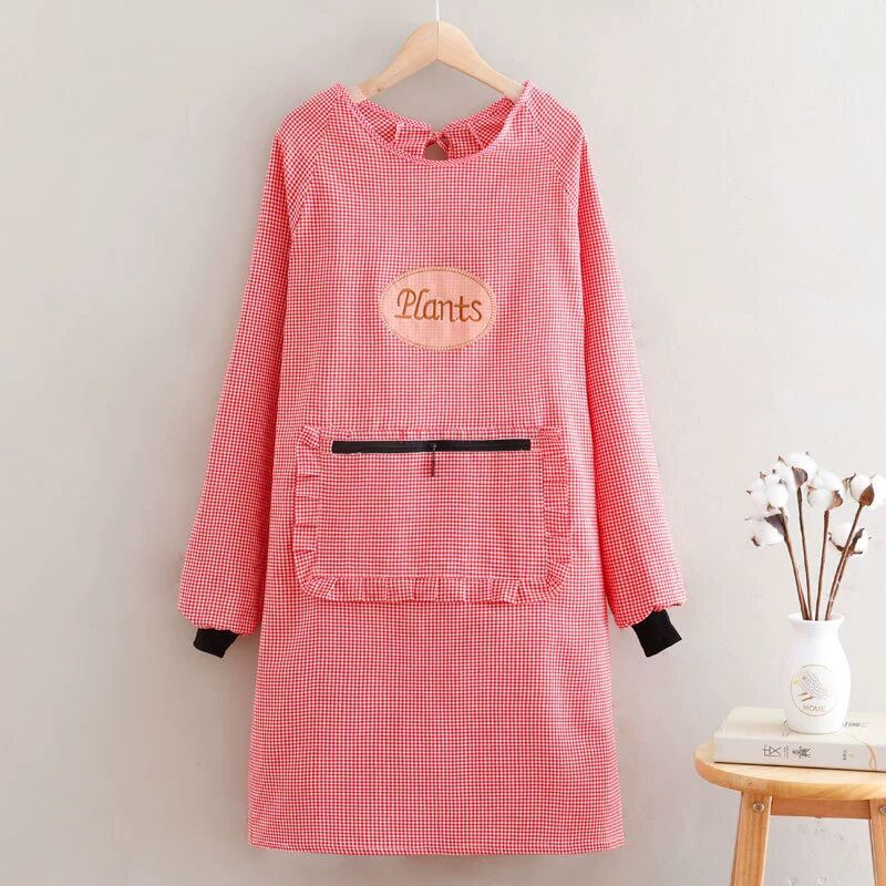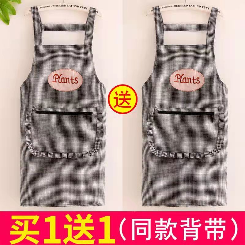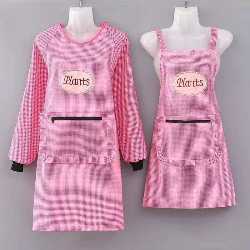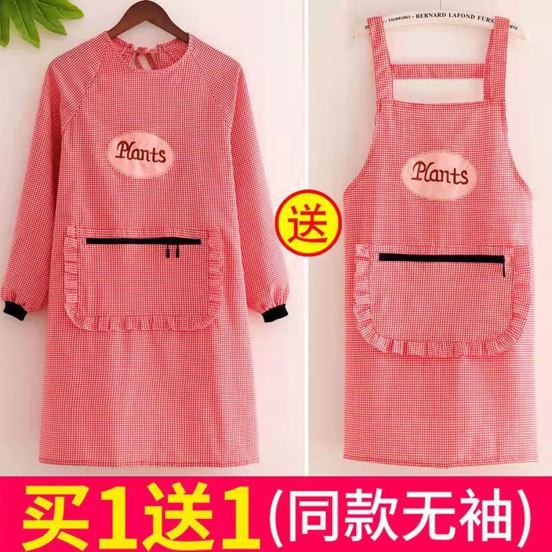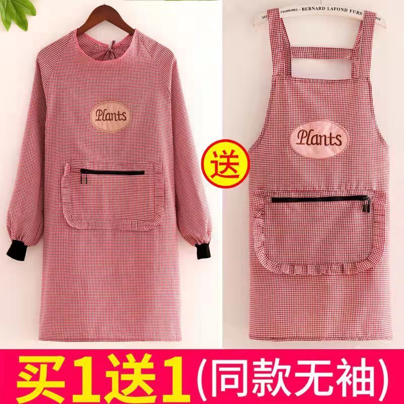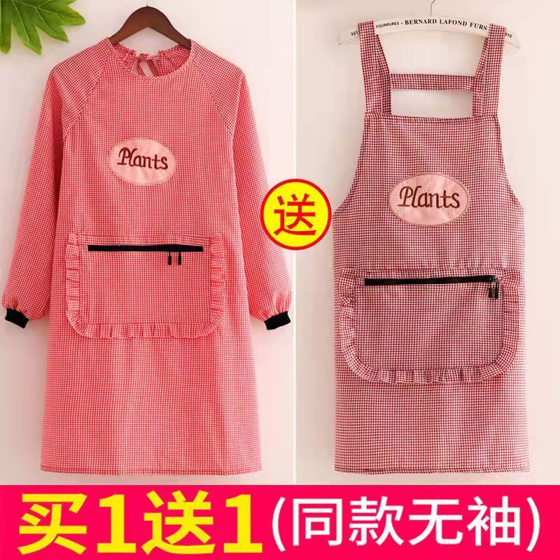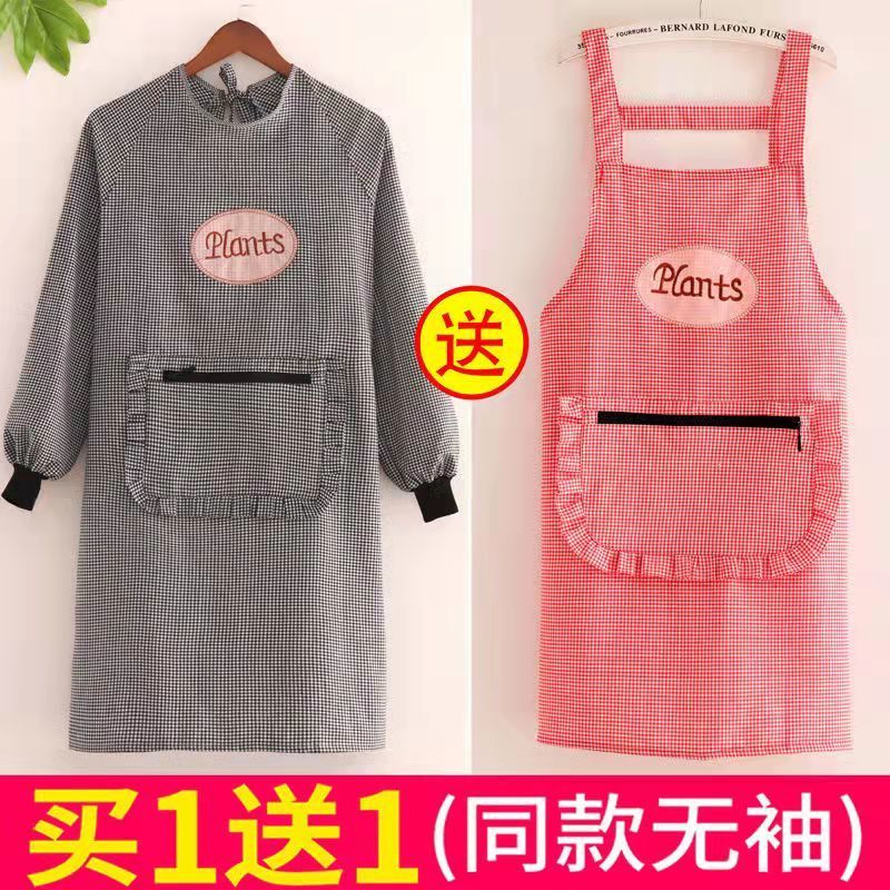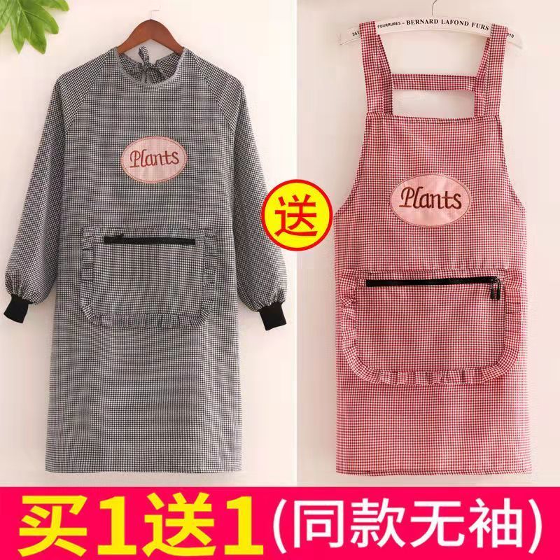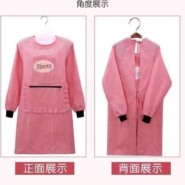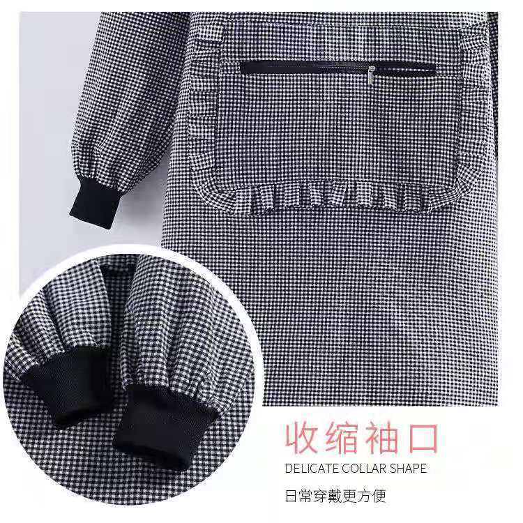 棉长袖女士时尚围裙厨房家用做饭防油罩衣拉链兜宽松男耐脏工作服