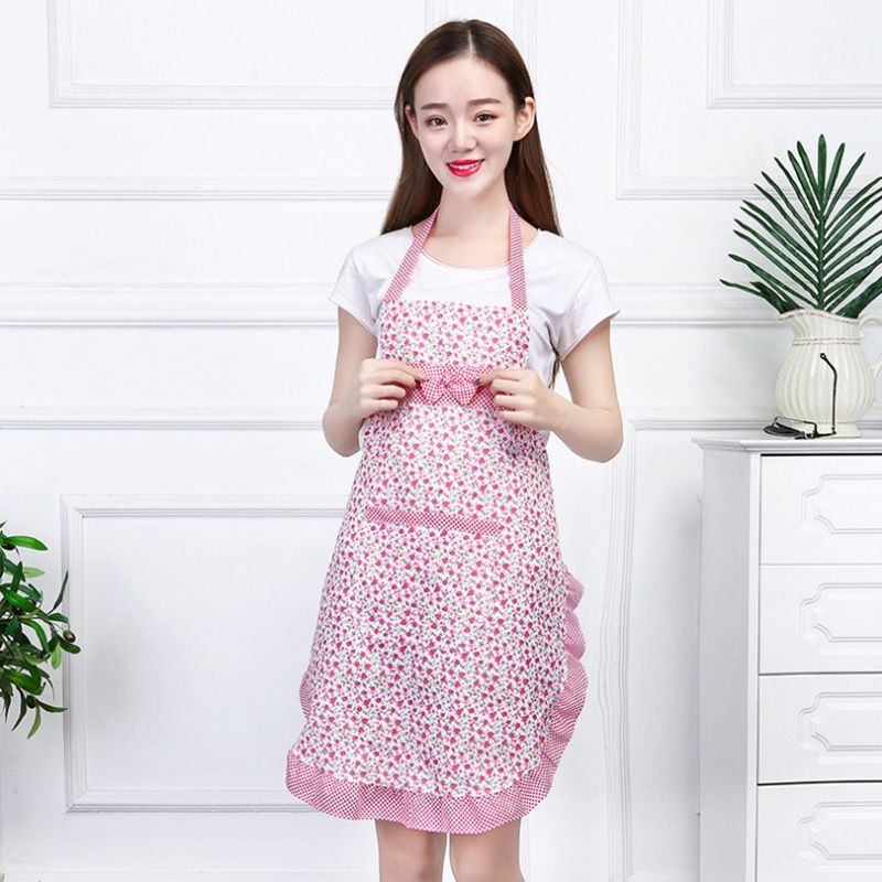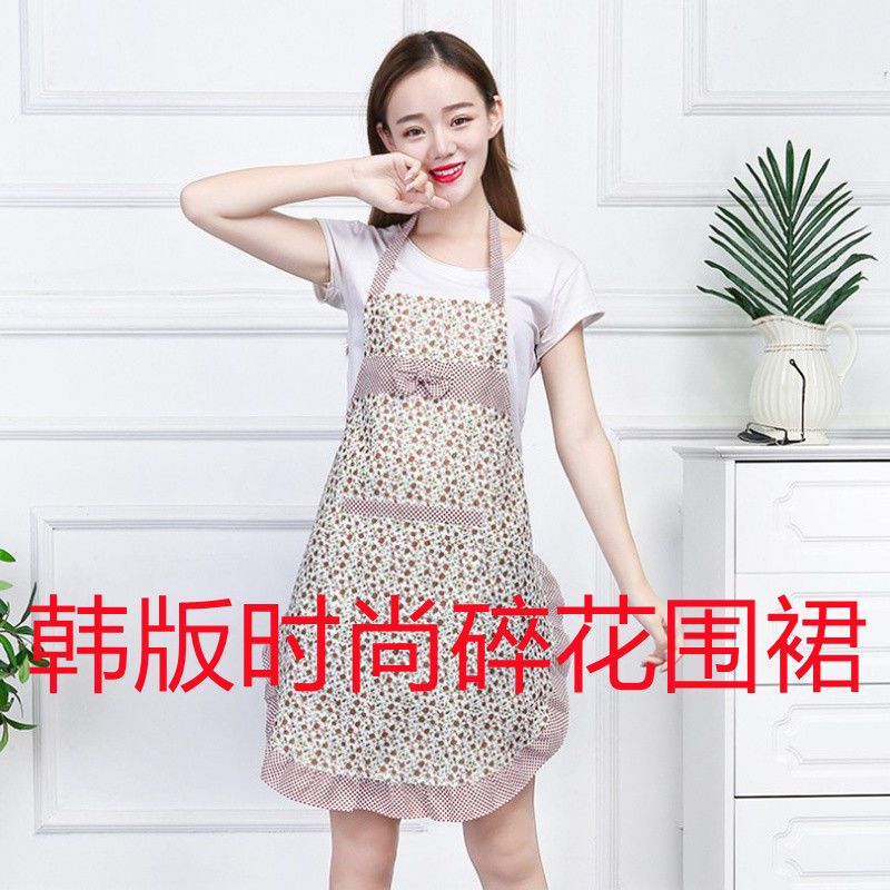 围裙女厨房可爱时尚罩衣上班工作做饭双肩花边围腰小碎花款好看