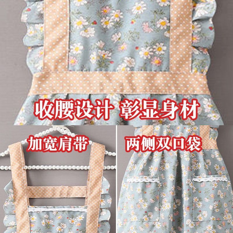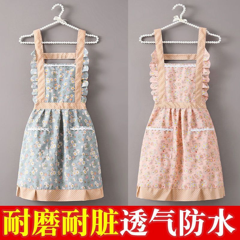 韩版新款围裙帆布透气厨房家用公主做饭防油围腰耐磨时尚可爱
