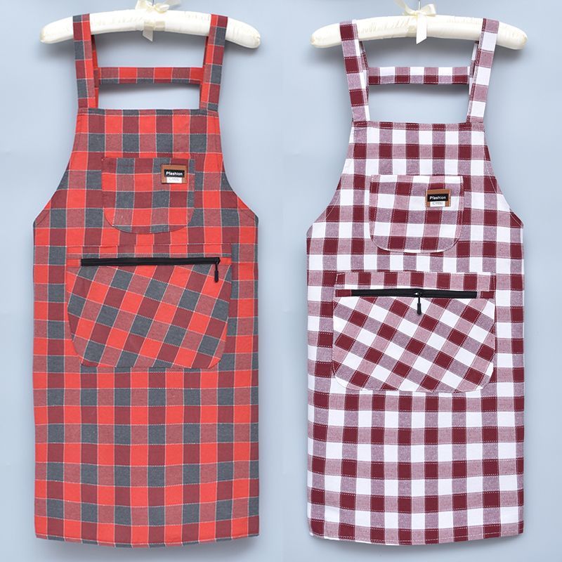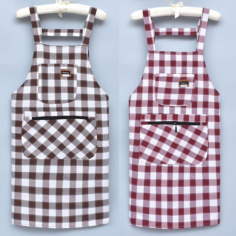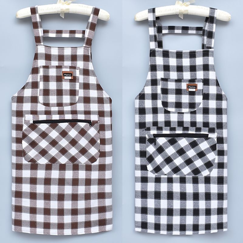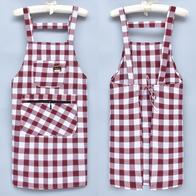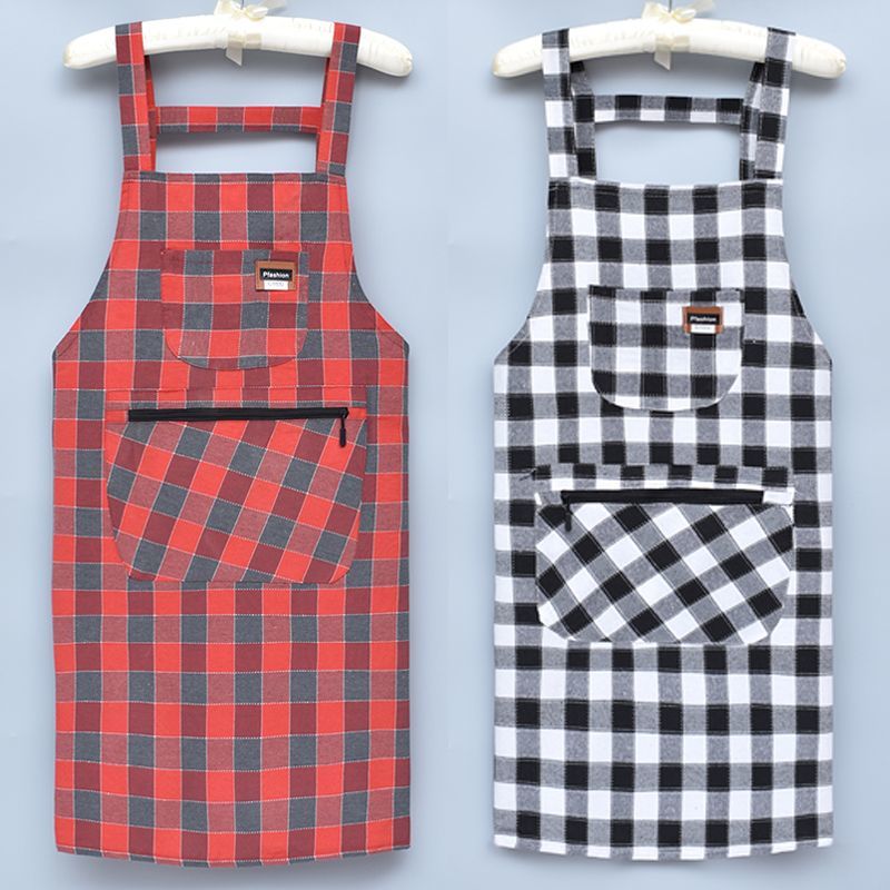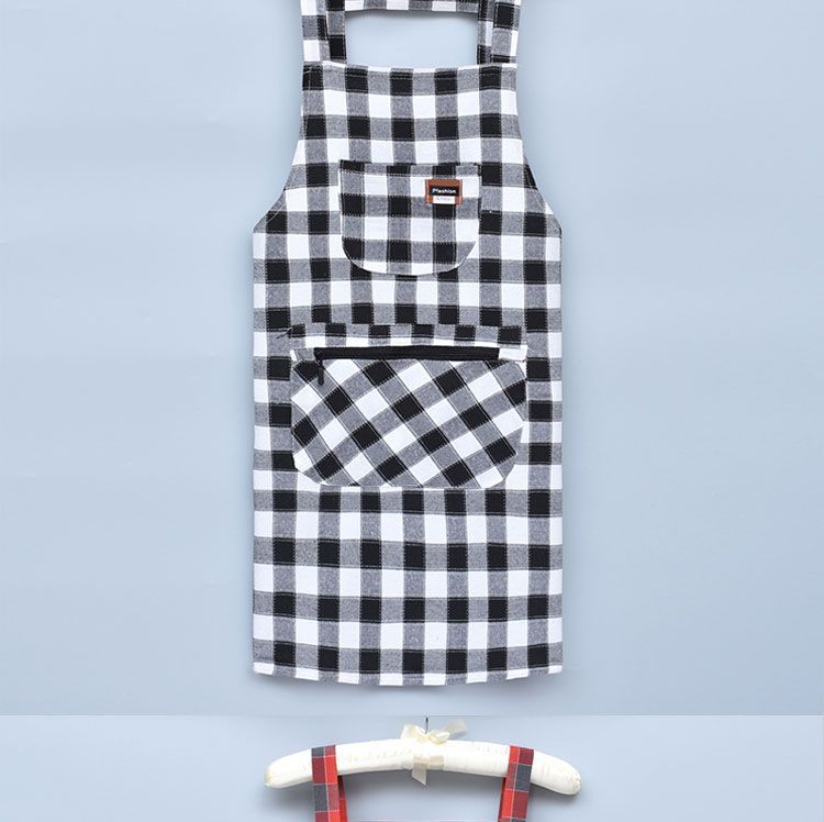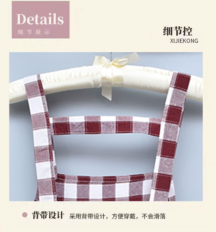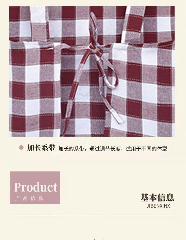 围裙格子新款棉布透气做饭上班工作服洋气时尚厨房家用耐脏围腰
