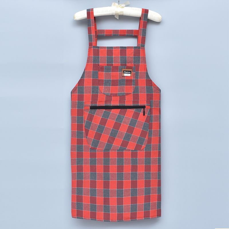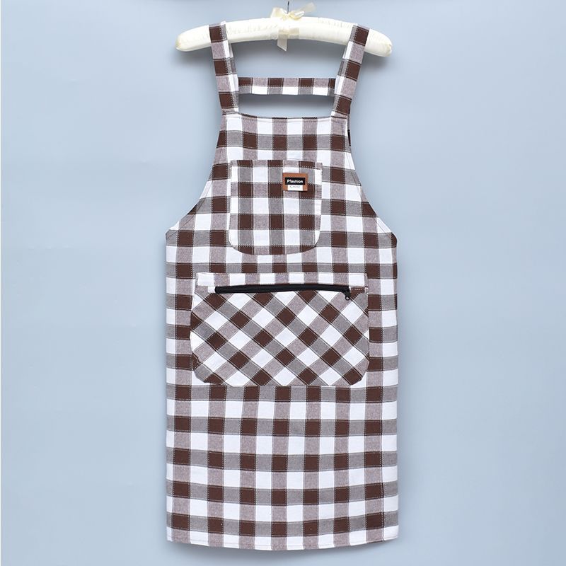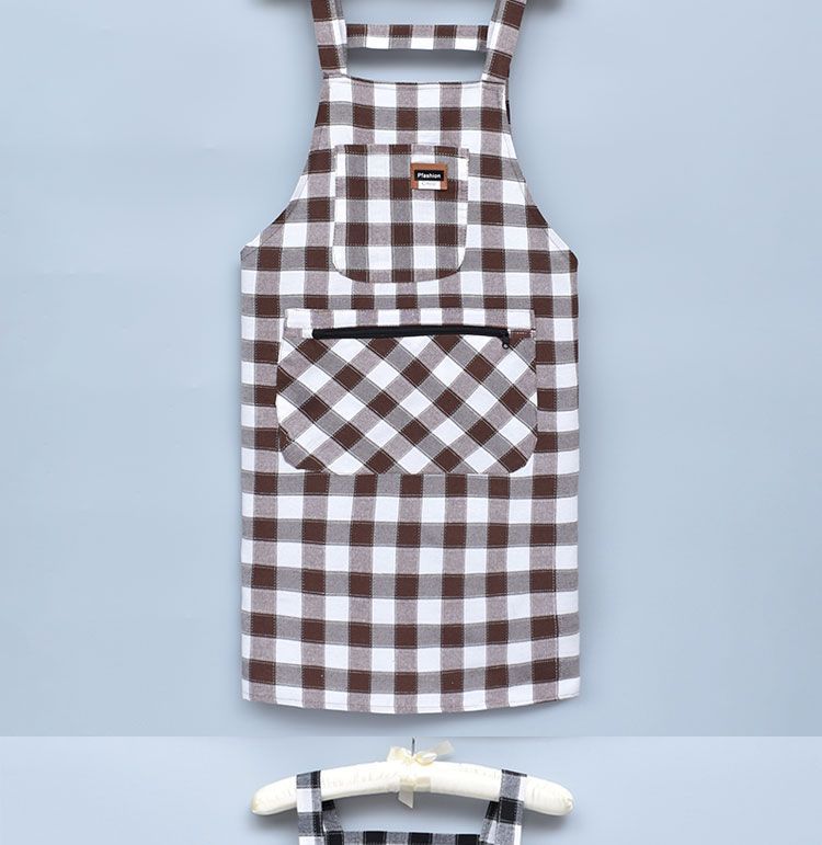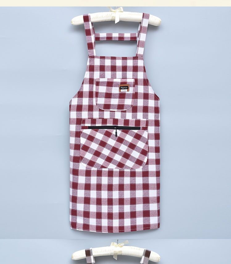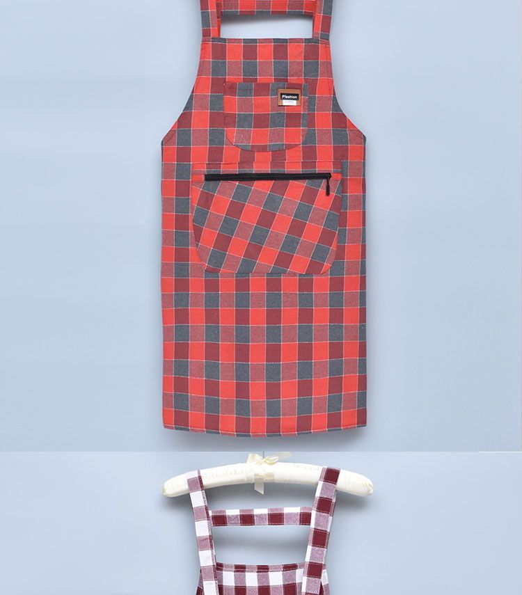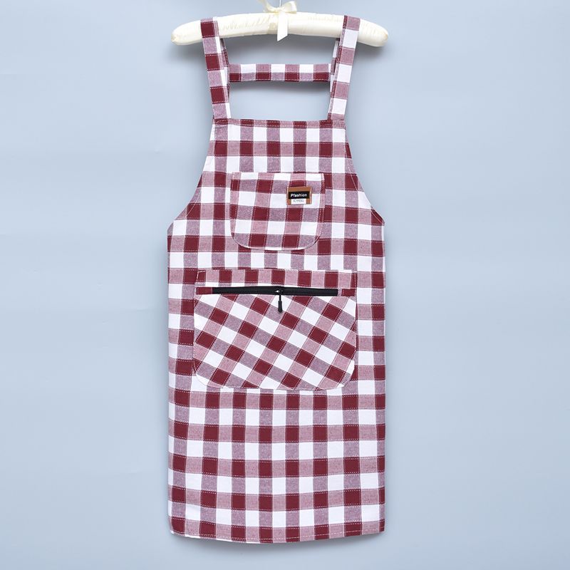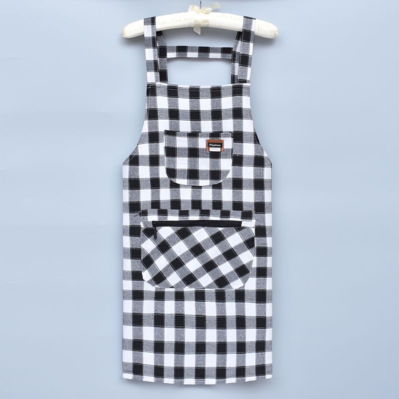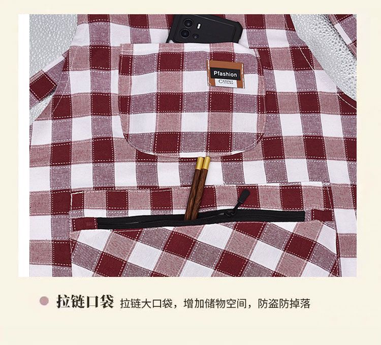 围裙格子新款棉布透气做饭上班工作服洋气时尚厨房家用耐脏围腰