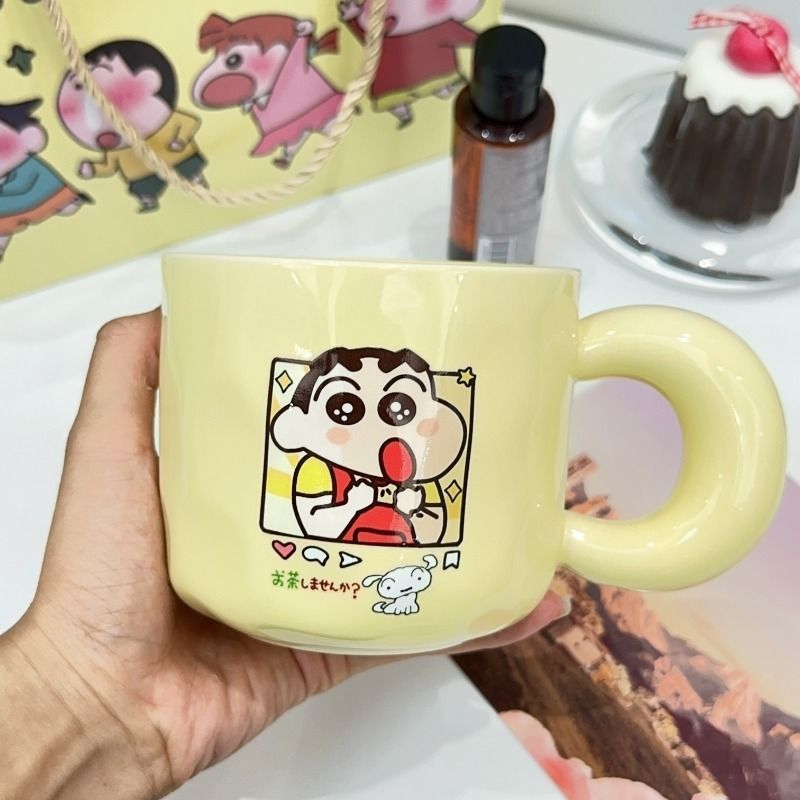 蜡笔小新马克杯ins卡通高颜值生日礼物送男女朋友姐妹情侣有意义