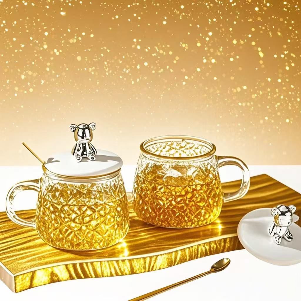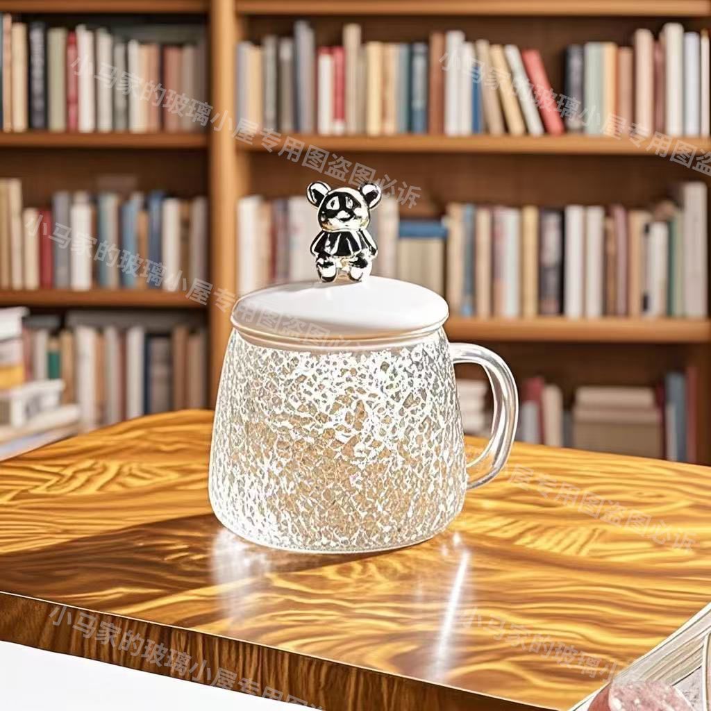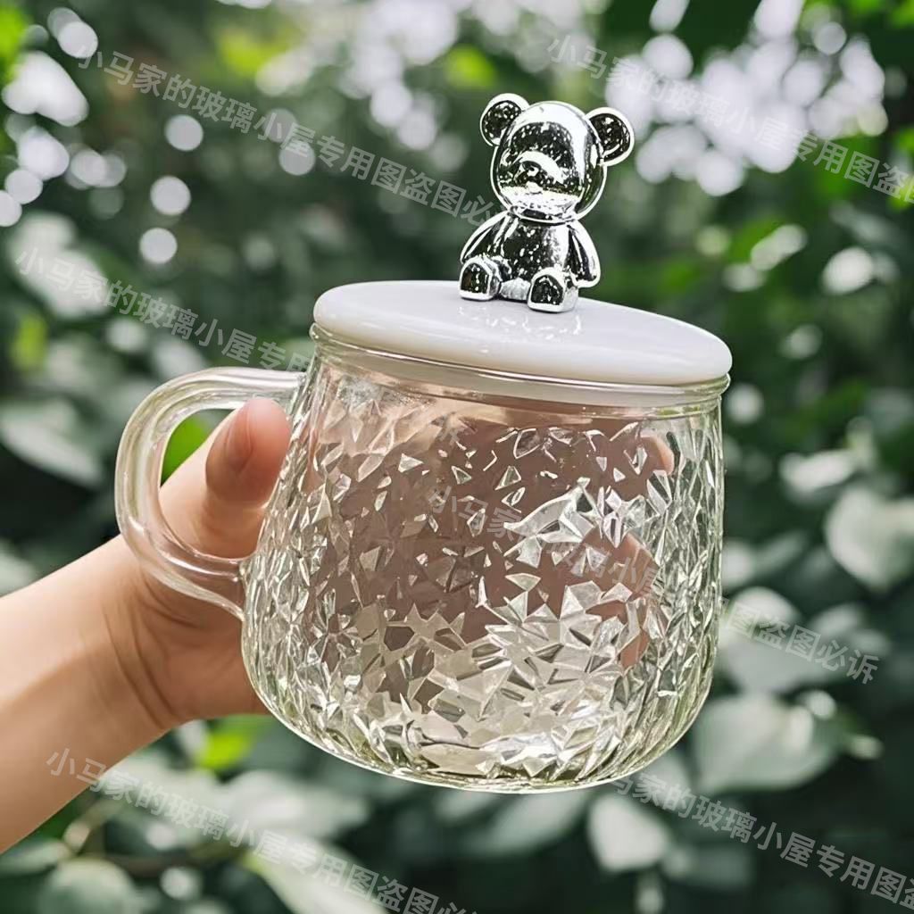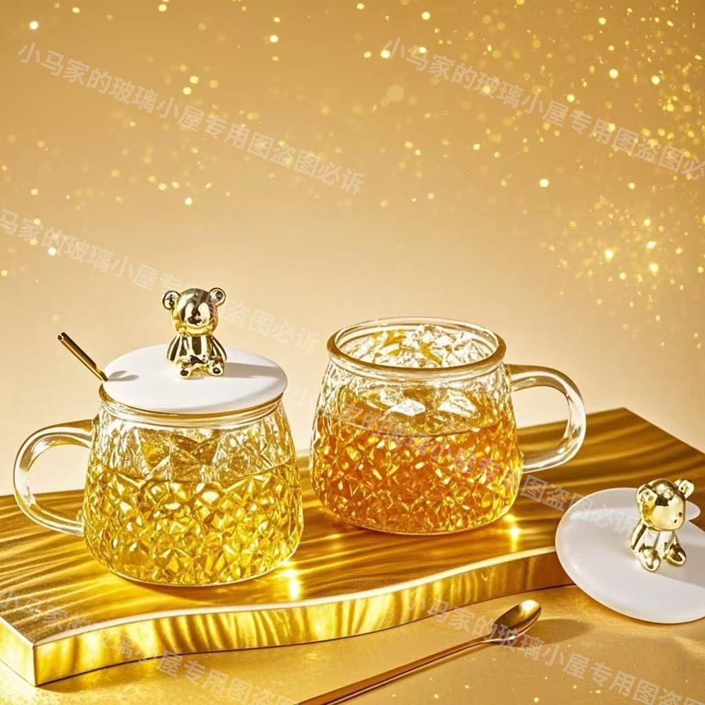 【两只】小熊杯子ins高颜值茶杯简约早餐玻璃杯带盖可爱马克杯