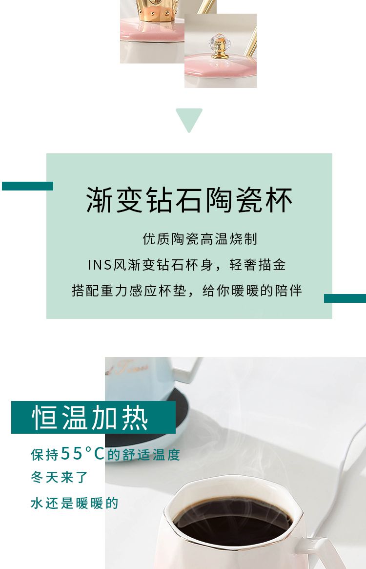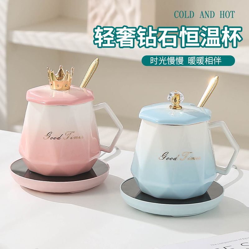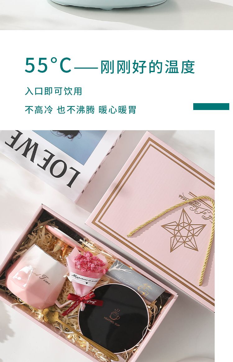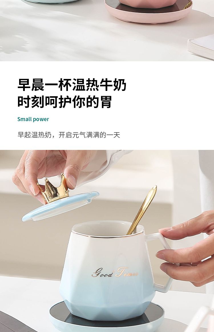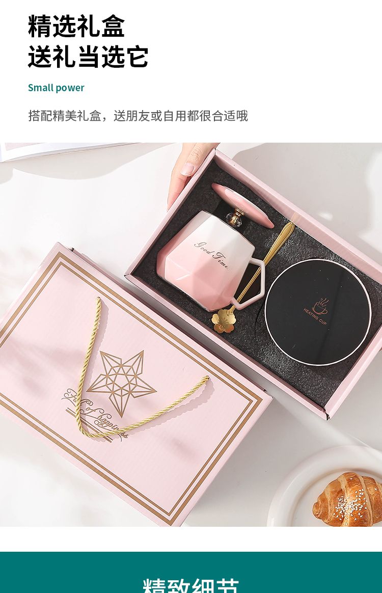 马克杯55度恒温加热水杯高颜值男女学生带盖勺情侣陶瓷杯杯子送礼