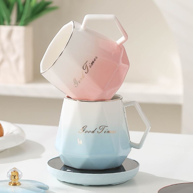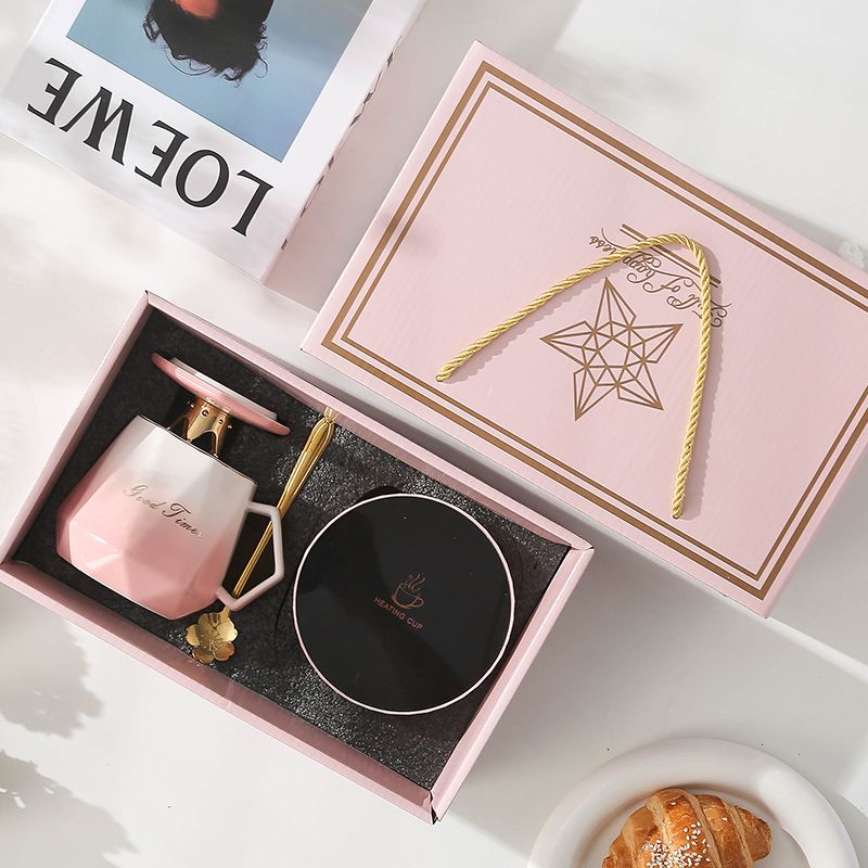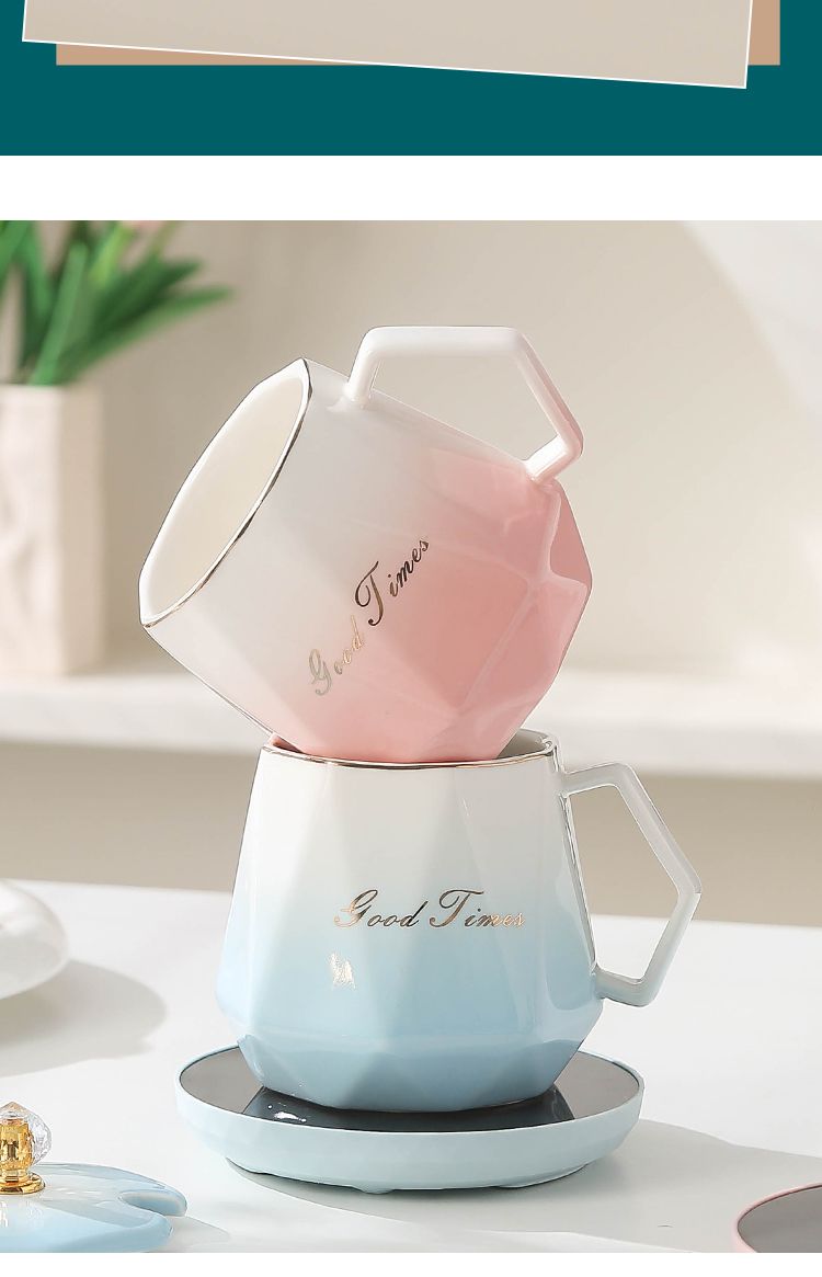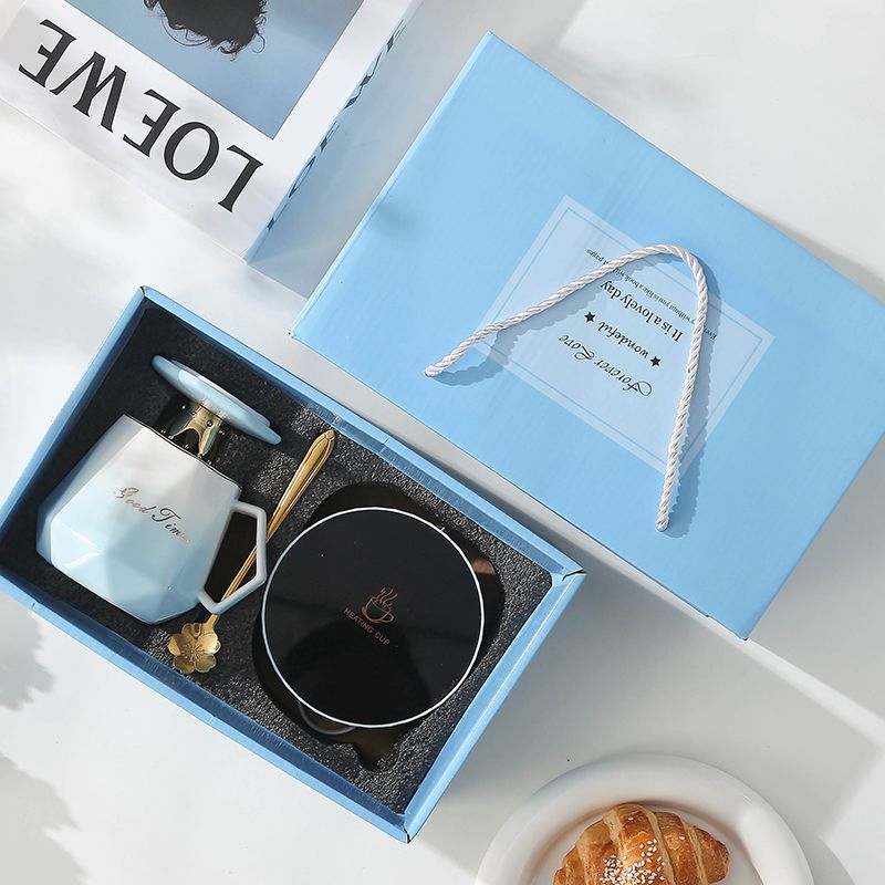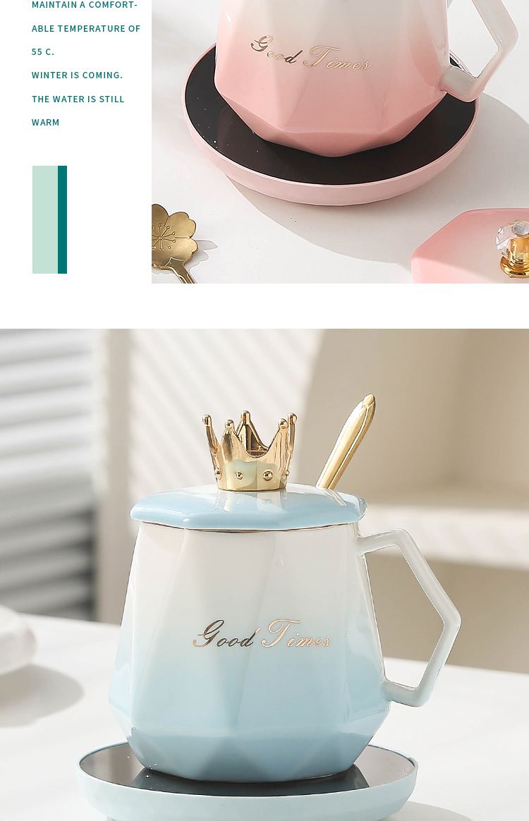 马克杯55度恒温加热水杯高颜值男女学生带盖勺情侣陶瓷杯杯子送礼