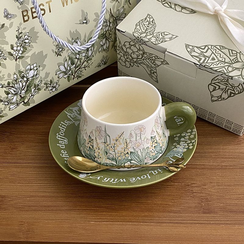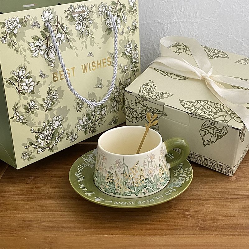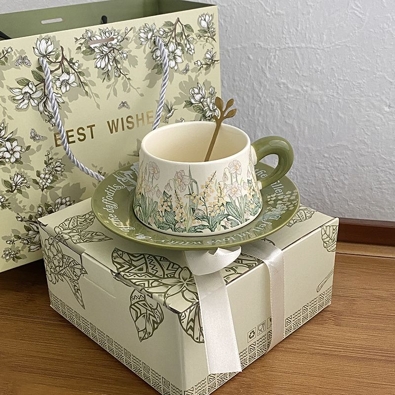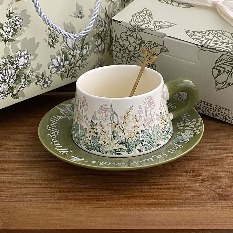 复古油画铃兰花春日气息咖啡杯碟伴手礼杯子马克杯高级感女生礼物