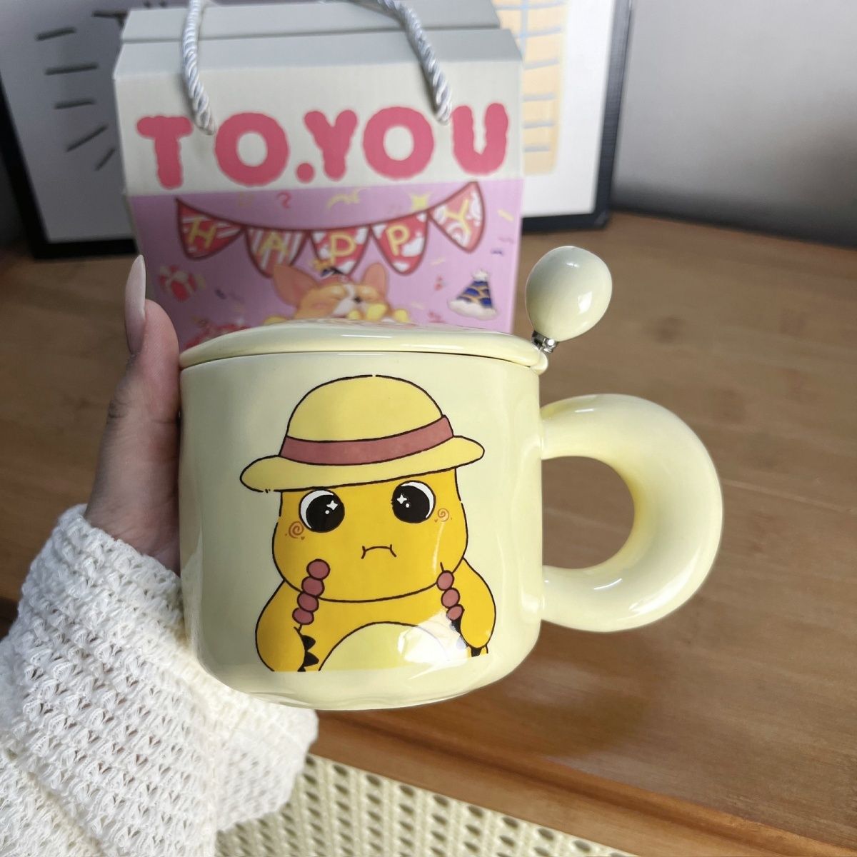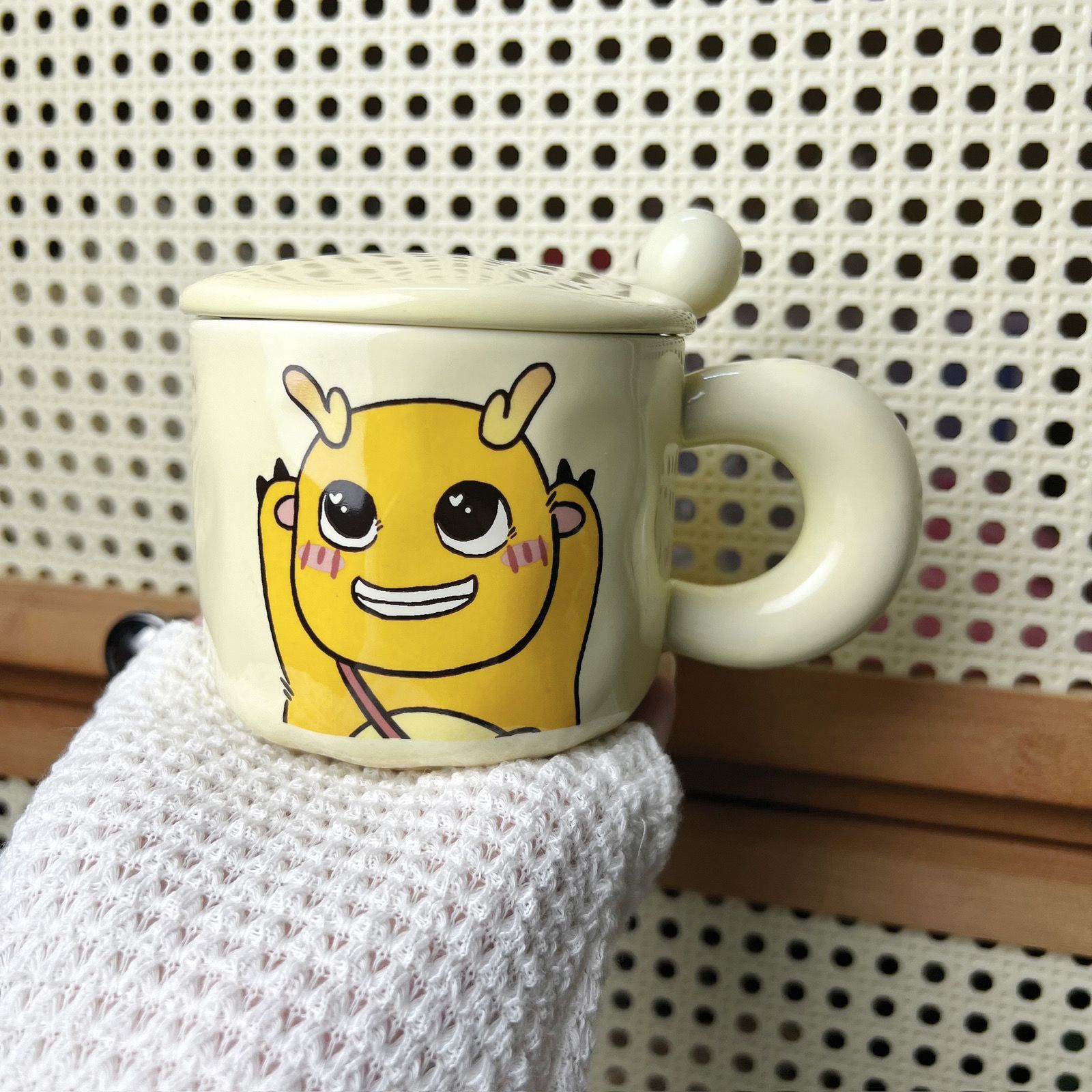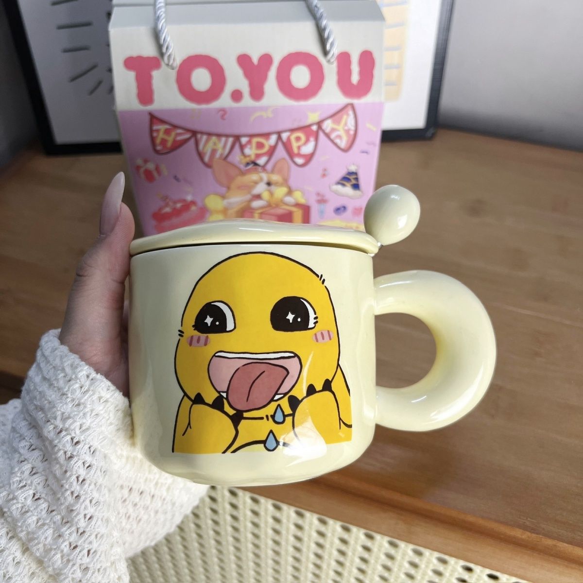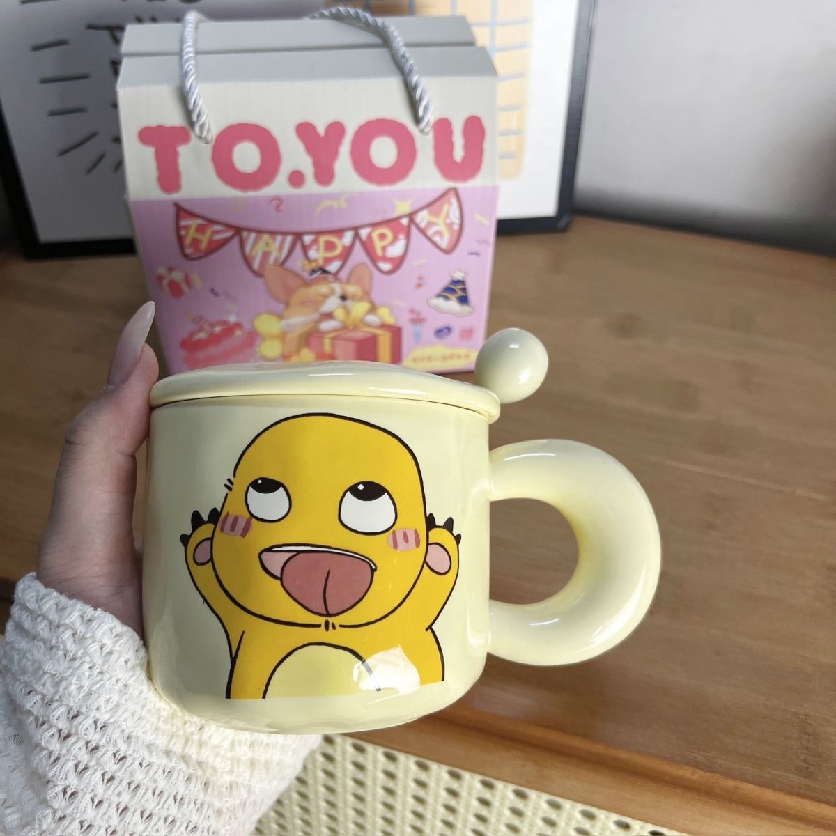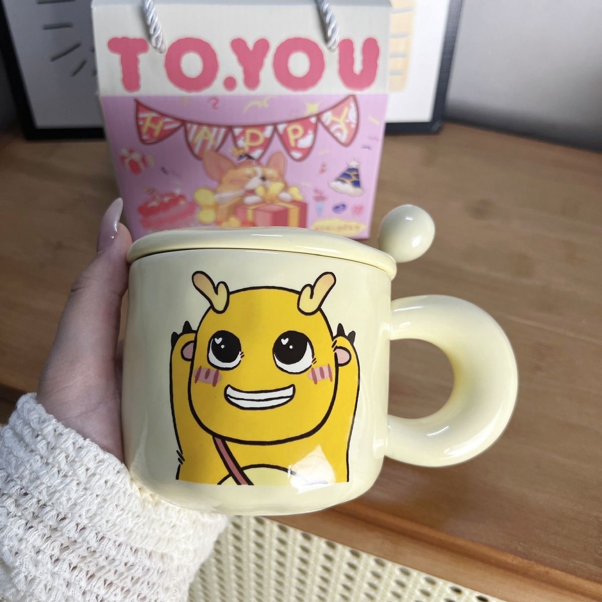 新款奶龙陶瓷马克杯有盖水杯咖啡杯可爱搞怪情侣闺蜜生日礼物礼盒