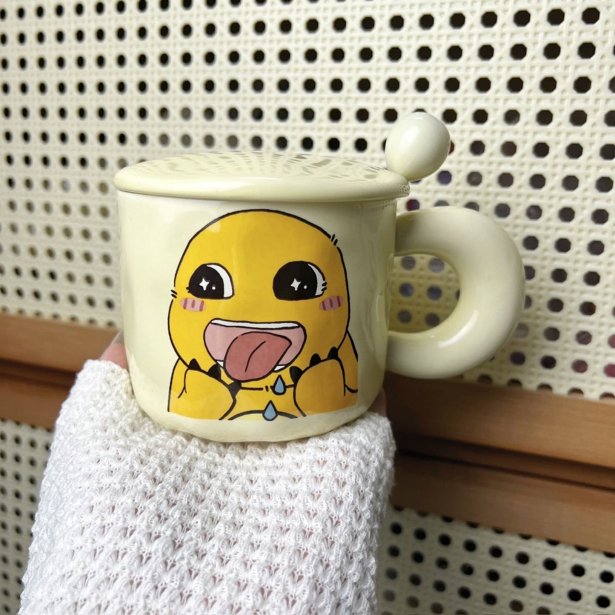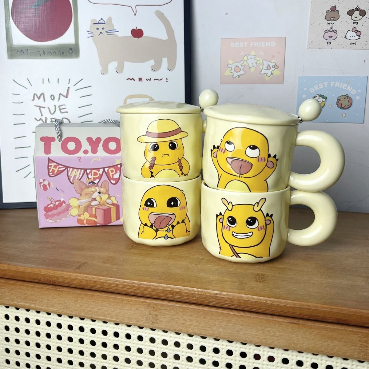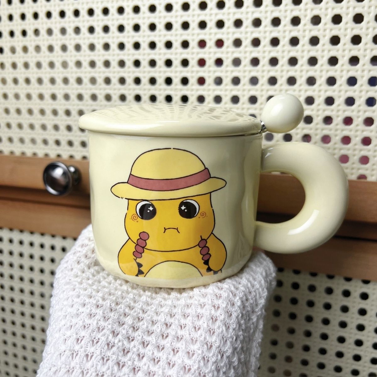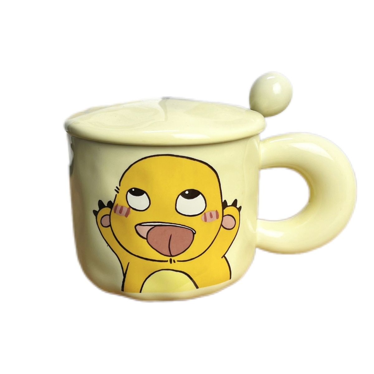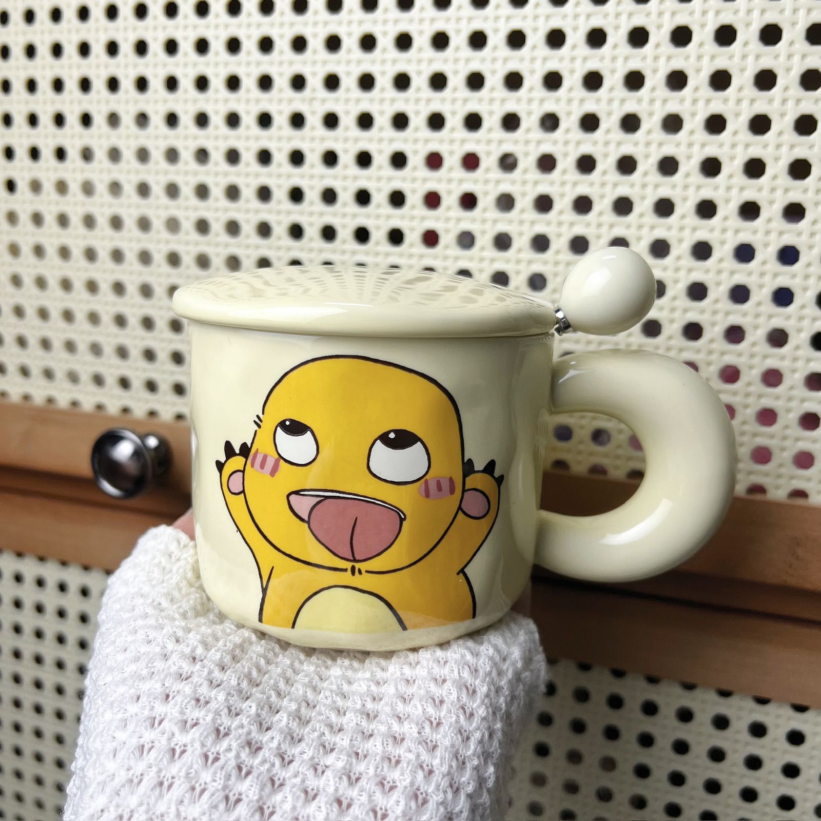 新款奶龙陶瓷马克杯有盖水杯咖啡杯可爱搞怪情侣闺蜜生日礼物礼盒