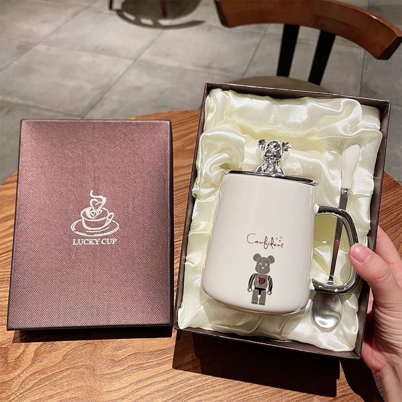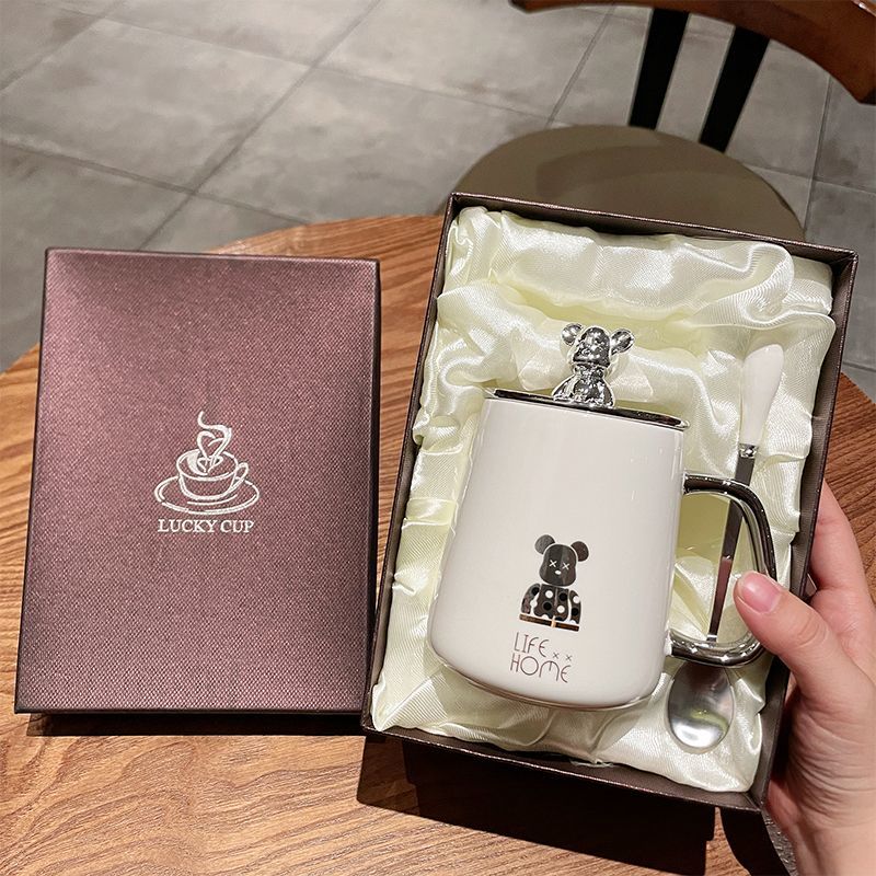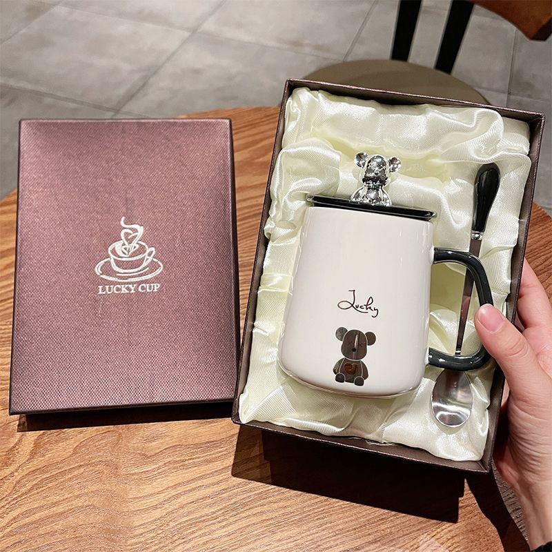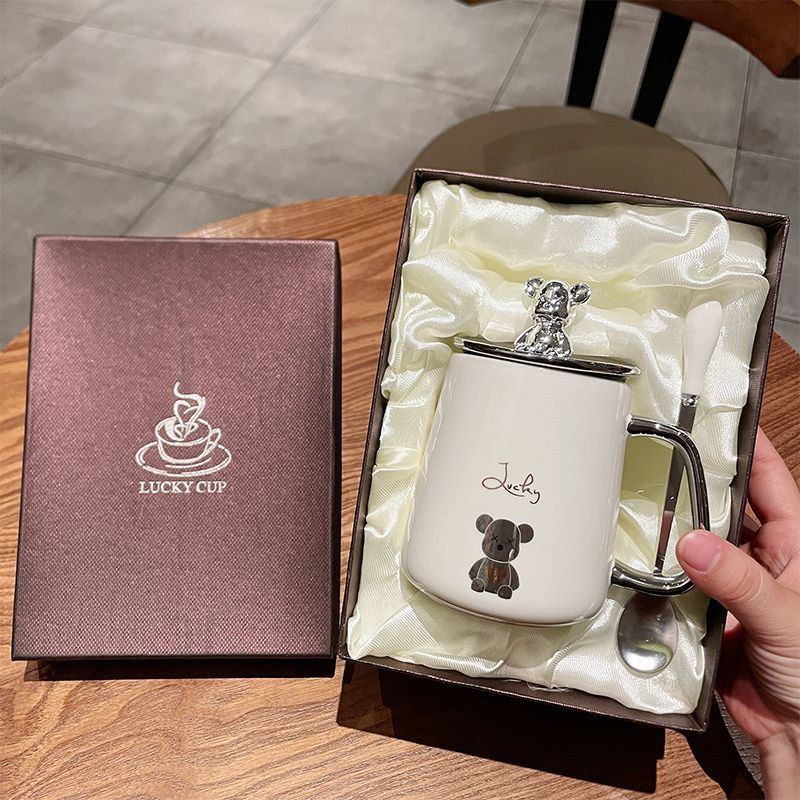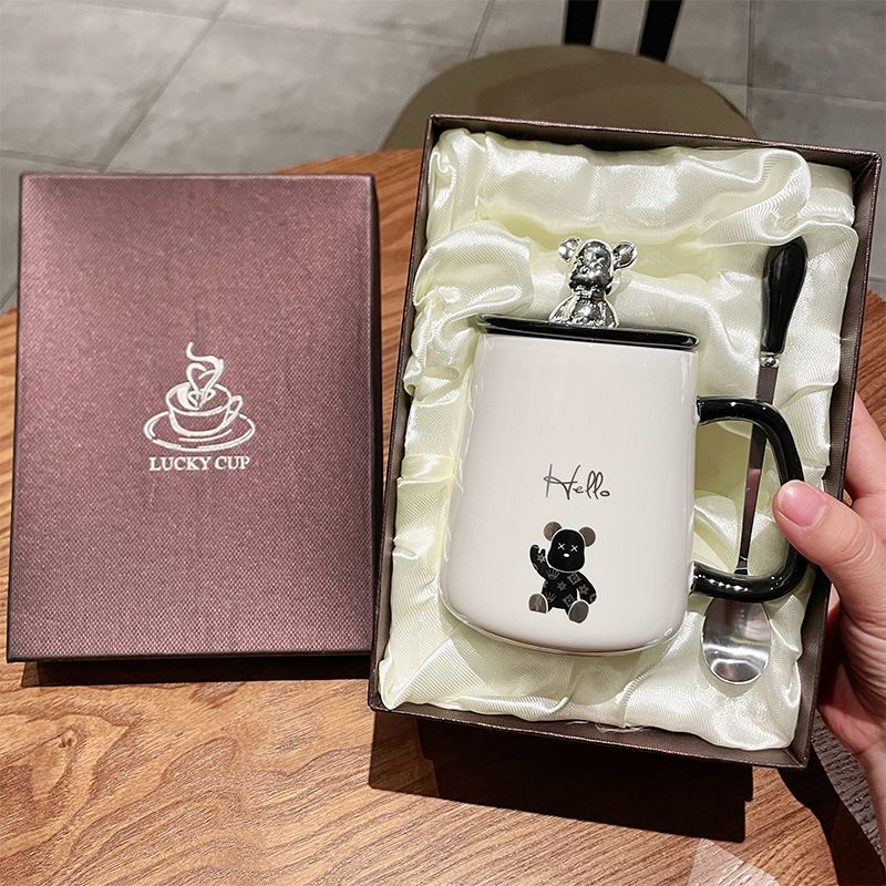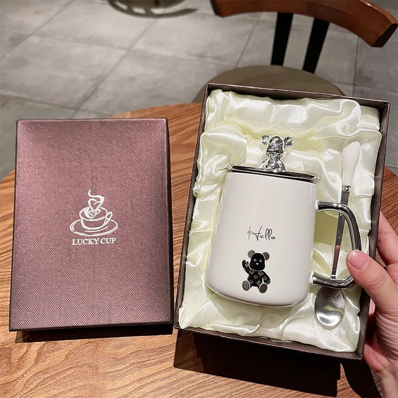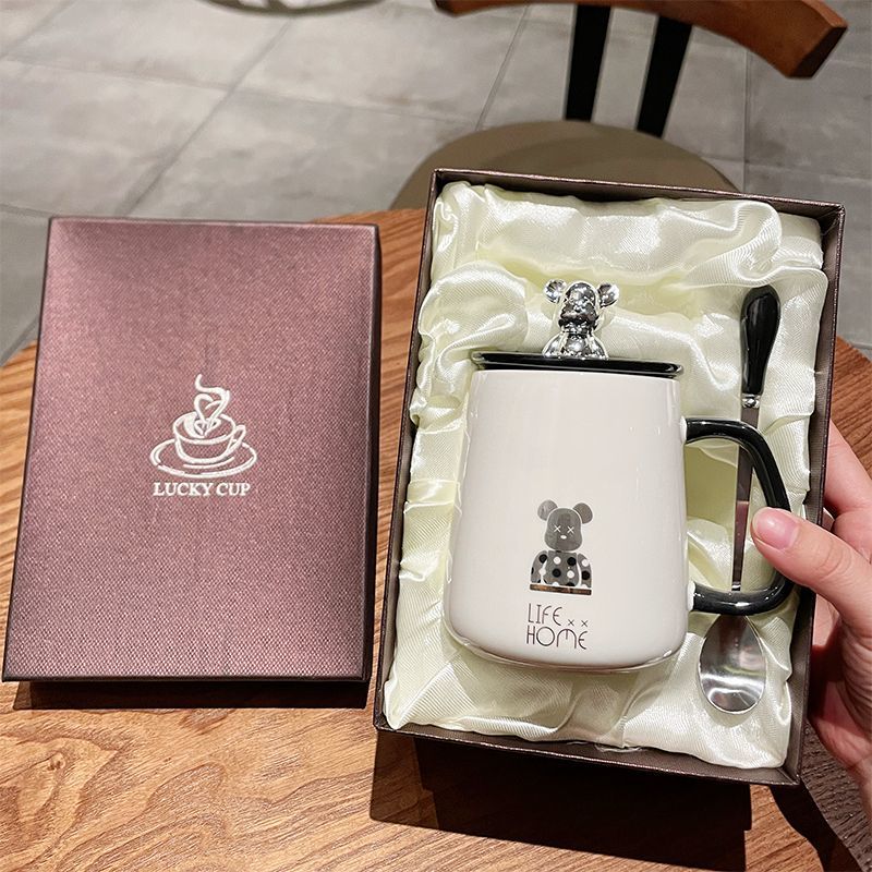 伴手礼送女生男生礼物马克杯礼品陶瓷咖啡喝水杯子带盖勺子女套装