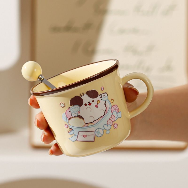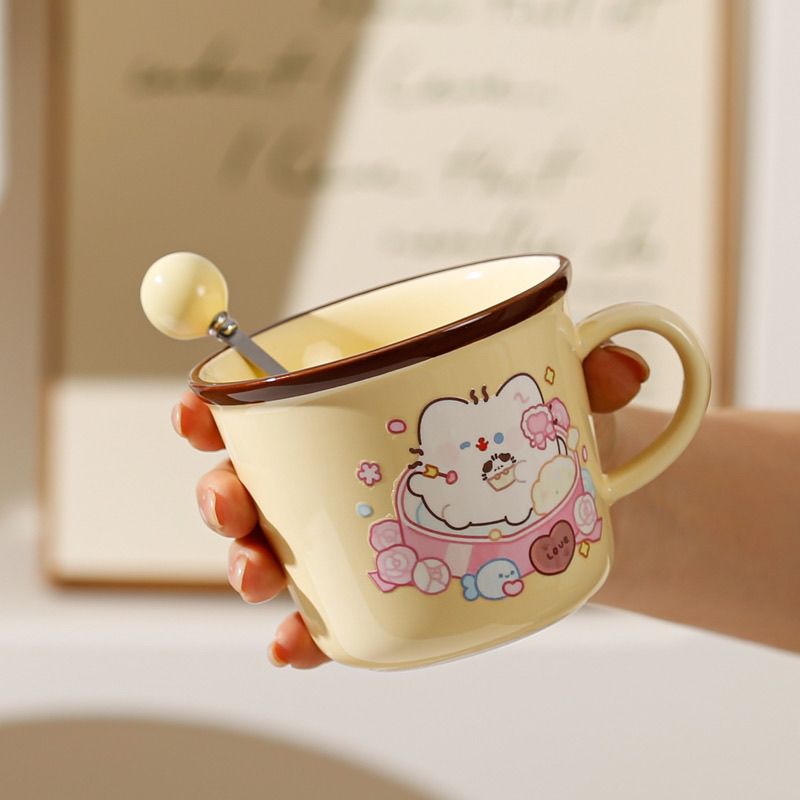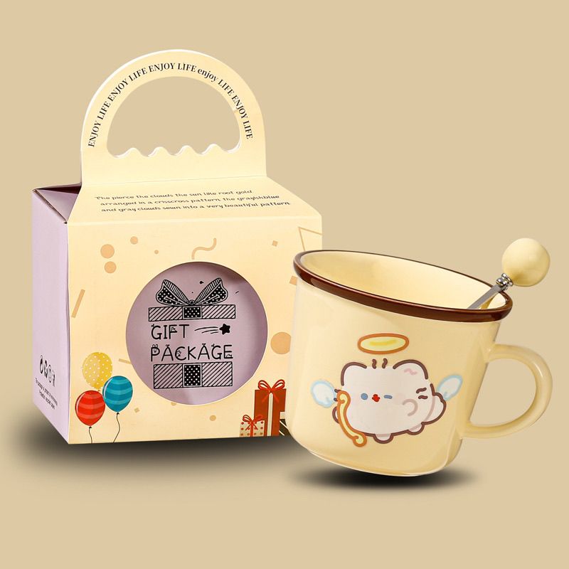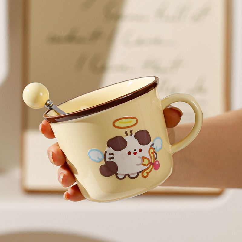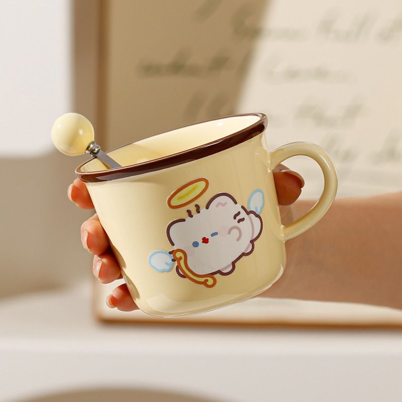 少女心天使马克杯可爱奶fufu卡通家用带勺水杯送姐妹朋友生日礼物