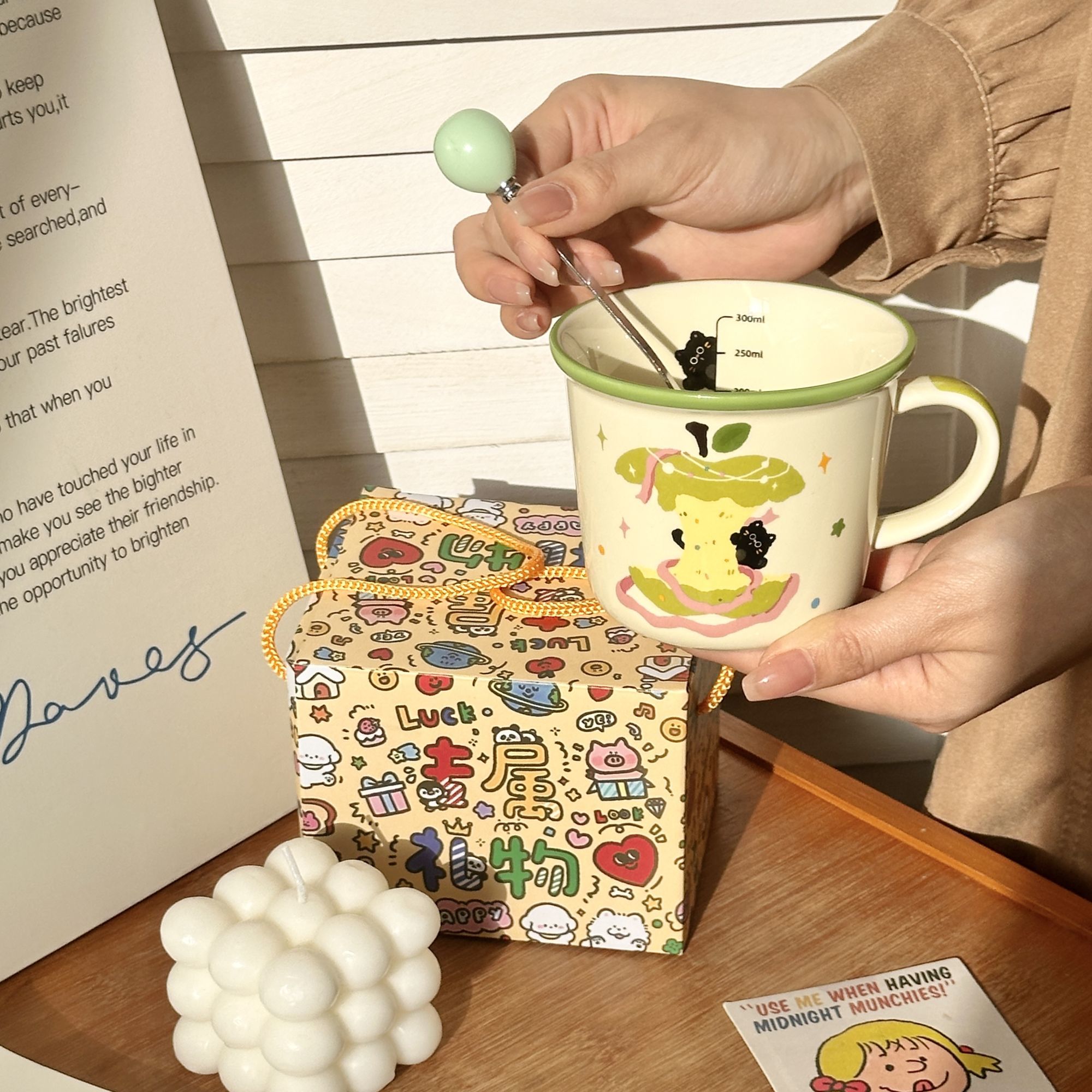 | 绿苹果猫 杯子+勺子+礼盒 | USD $3.16 | 999999 piece available |