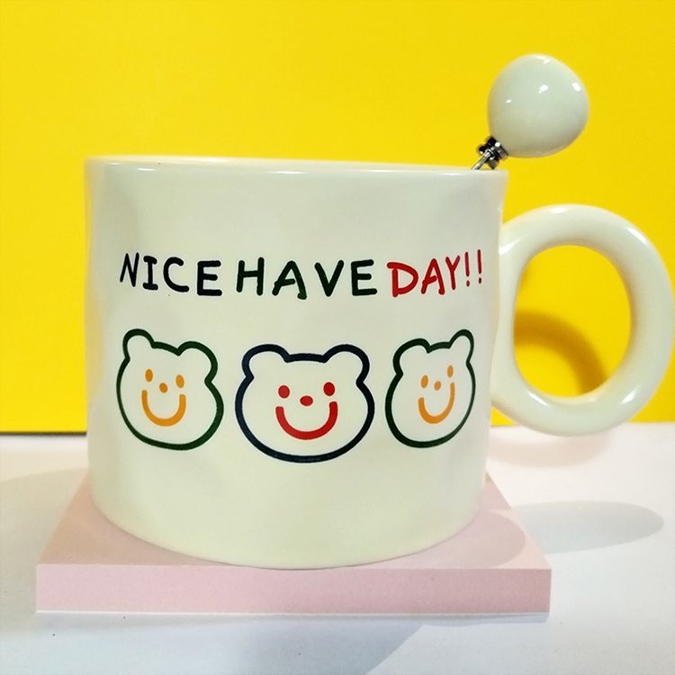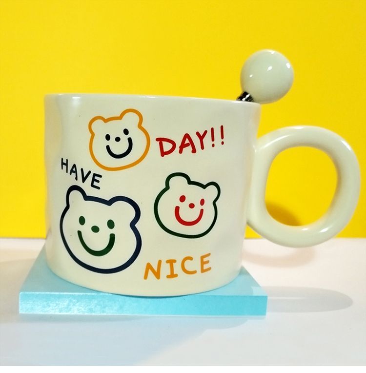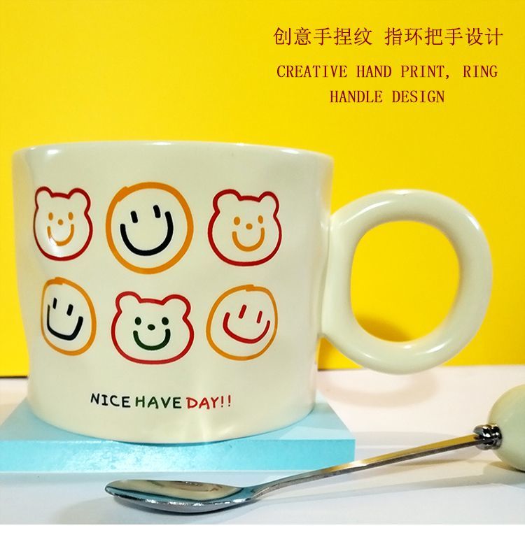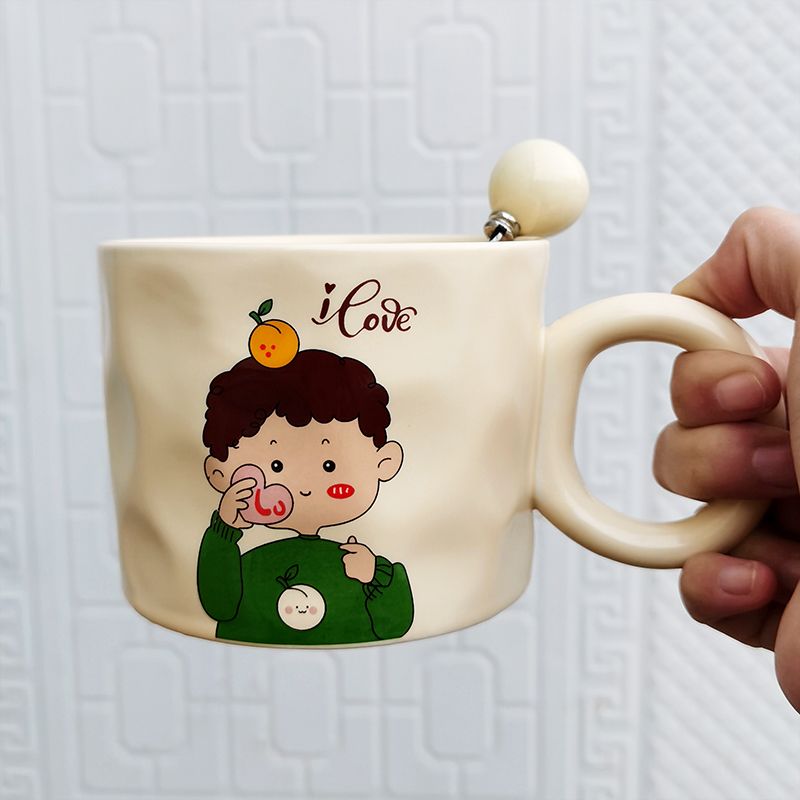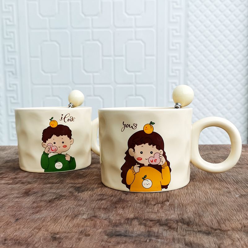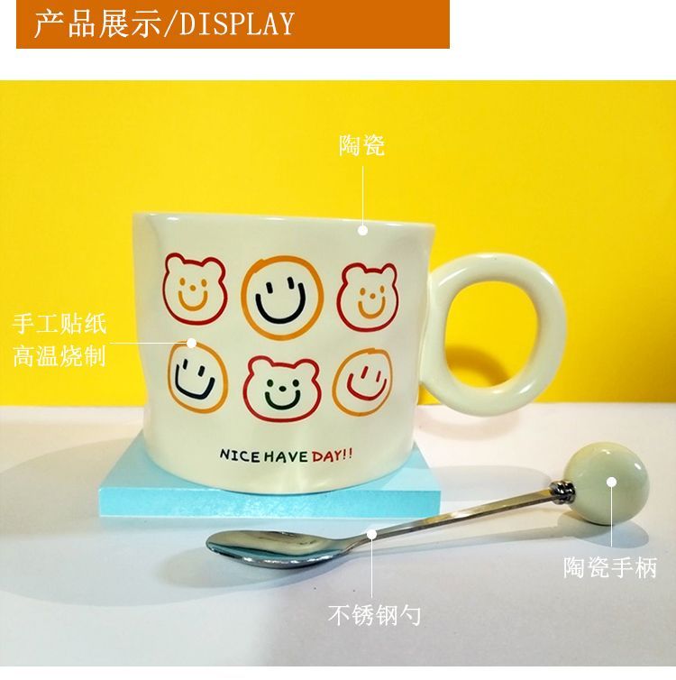 创意陶瓷水杯带勺马克杯奶茶色情侣ins网红设计咖啡杯家用杯子