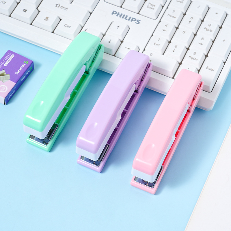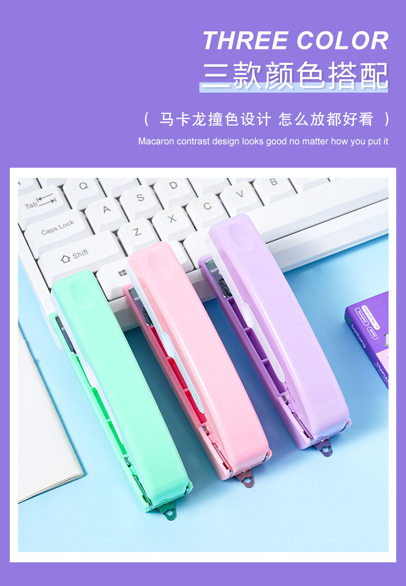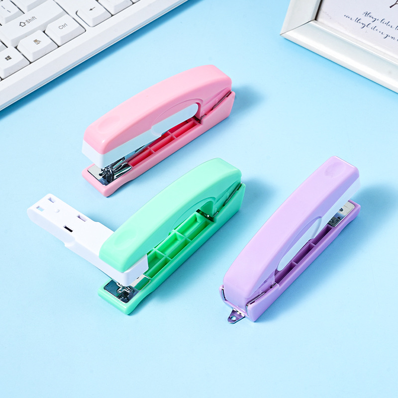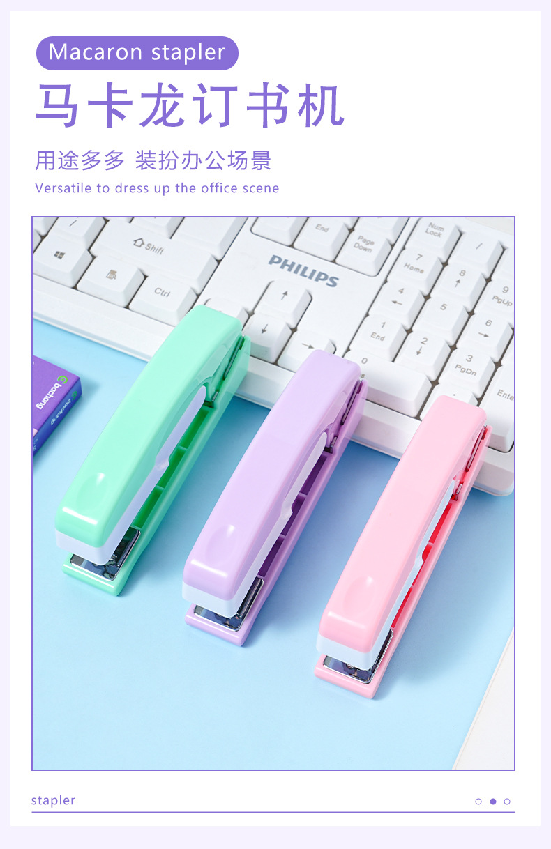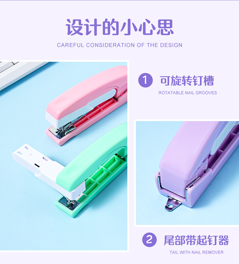 可旋转马卡龙色订书机小清新省力订书器学生办公多功能装订机文具