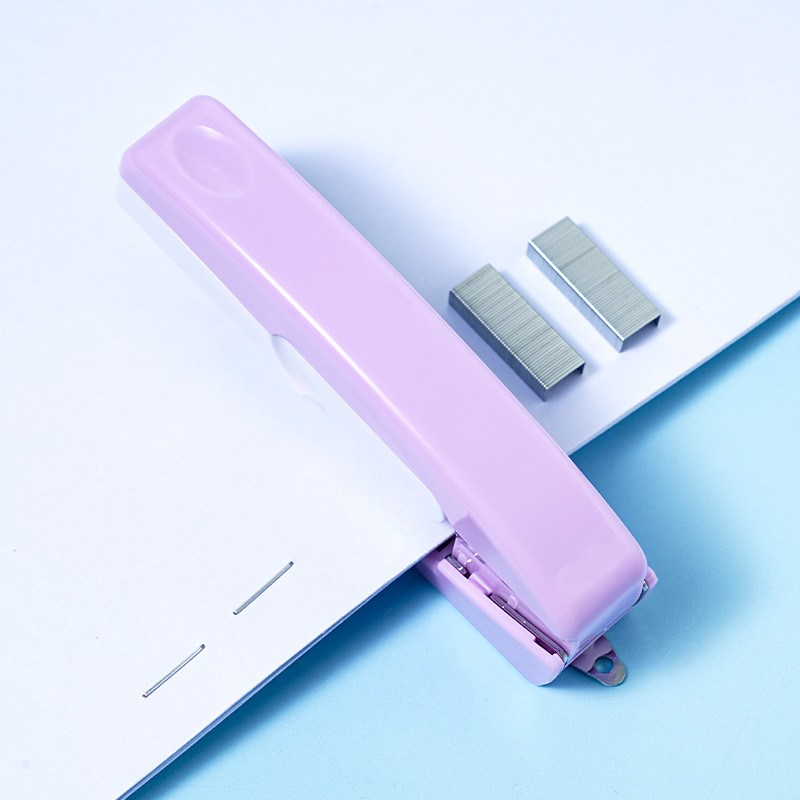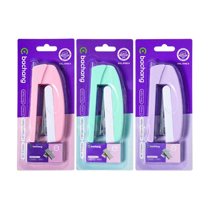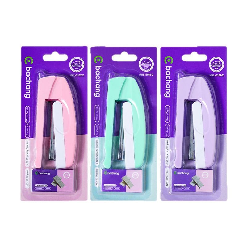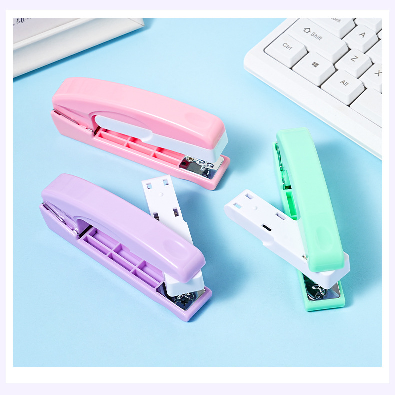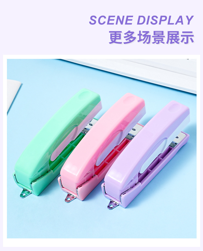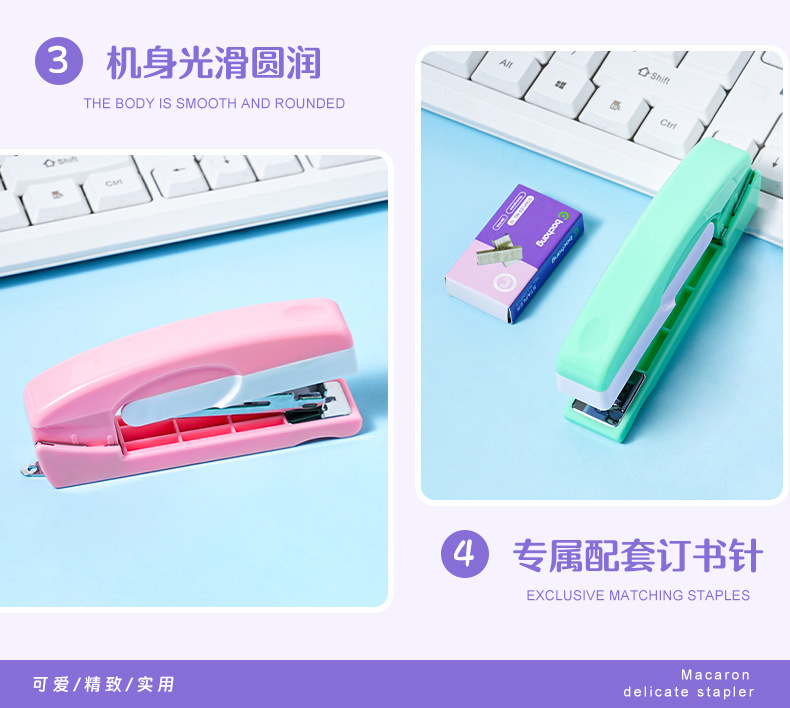 可旋转马卡龙色订书机小清新省力订书器学生办公多功能装订机文具